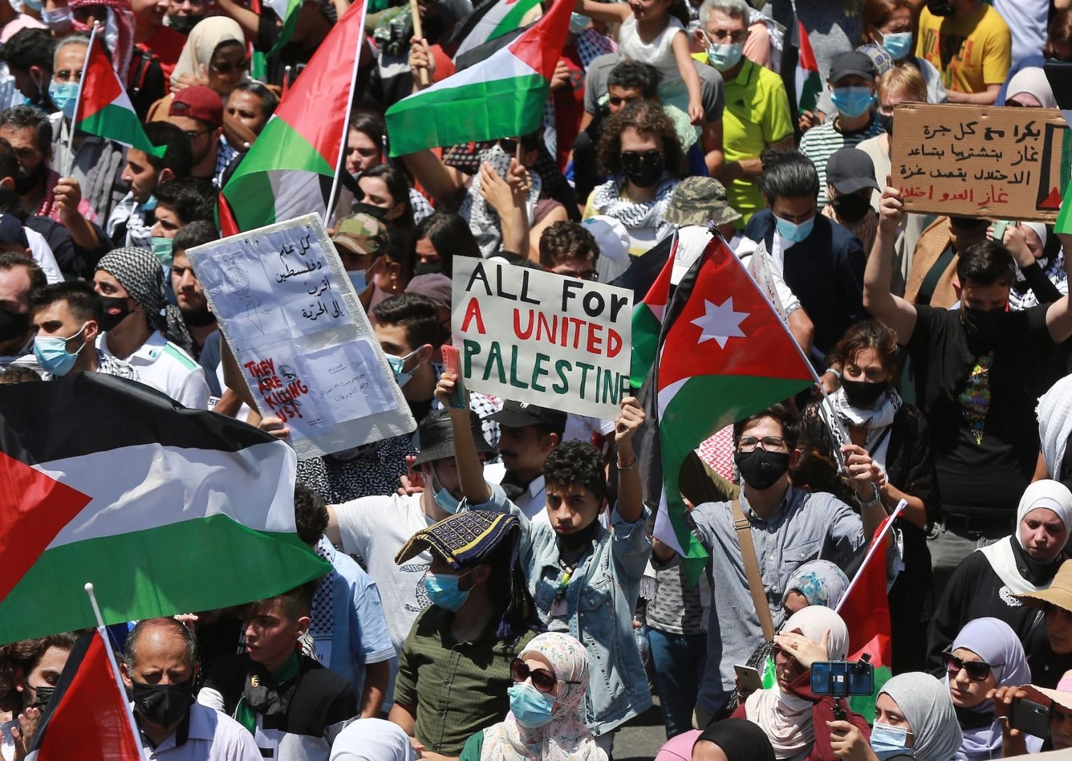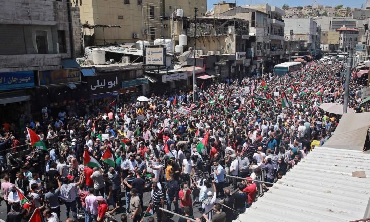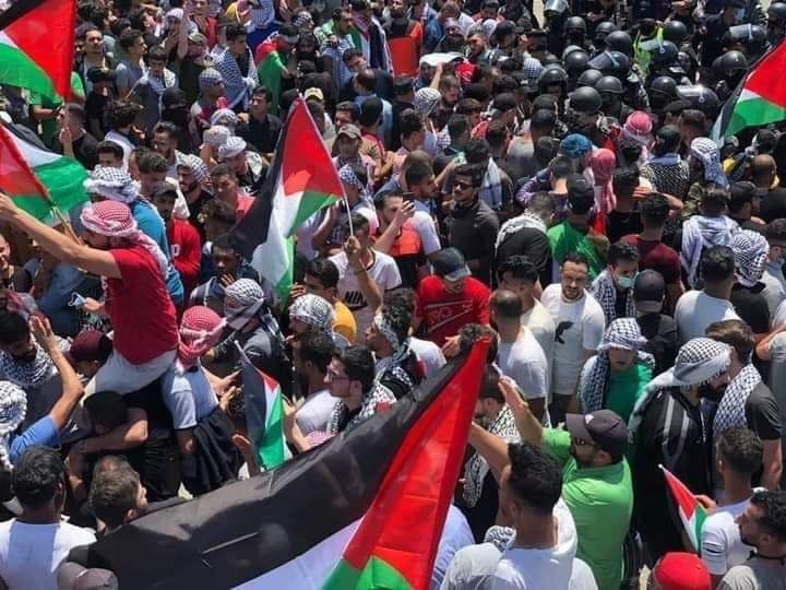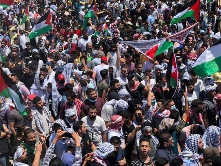 زحف آلاف الأردنيين من أمام المسجد الحسيني وسط العاصمة عمان، الجمعة، متوجهين إلى قرب الحدود الأردنية الفلسطينية في منطقة الأغوار الجنوبية، وذلك تضامنا مع الشعب الفلسطيني ونصرة للقدس وغزة.وصدحت حناجر المتظاهرين بالهتافات الثورية الرنانة “الله أكبر الله أكبر ولله الحمد”، و”على الحدود على الحدود”، و”على الأقصى رايحين شهداء بالملايين”، “بالروح بالدم نفديك يا أقصى” ، مستنكرين الاعتداءات الصهيونية السافرة بحق أبناء الشعب الفلسطيني والعدوان الغاشم على غزة .وطالب المتظاهرون من خلال المسيرة السلطات الأردنية بفتح الحدود للجهاد في فلسطين وتخليص إخوانهم الفلسطينيين من هذا الكيان المغتصب، مؤكدين على التمسك بالوحدة الوطنية كونها أحد الخيارات الرئيسية للانتصار.كما طالب آخرون بضرورة الرد الفعلي والرسمي من قبل الحكومة الأردنية وذلك باتخاذ إجراءات حازمة تعيد للوصاية الهاشمية هيبتها بطرد السفير الإسرائيلي من عمان وإلغاء جميع الاتفاقيات الرسمية وغير الرسمية مع العدو وعلى رأسها الغاز واتفاقية وادي عربة.وعلى ضوء ذلك، التحف المحتجون بـ”الشماغ الأحمرو الكوفية الفلسطينية” في خطوة مستلهمة ورسالة صادقة تدل على أهمية الترابط الأردني الفلسطيني بأن قضيتهم واحدة.ويأتي تفاعل الأردنيين مع دعوات الاحتشاد بعد تداول هاشتاغ “#يلا_على_الحدود” الذي اعتلى قائمة الهاشتاغات الأكثر استخداما في الأردن.وشهدت مسيرة غضب وتضامن مع صلاة الجمعة على أقرب نقطة مسموح بها مع حدود فلسطين مزيجا نادرا من المتظاهرين الممثلين لمختلف القوى الإجتماعية، حيث نشطاء بارزون من المكونات العشائرية إلى جانب نظراء لهم من مؤسسات المجتمع المدني والعشرات من أبناء الحركة الإسلامية المحلية وحتى بعض رموز التيارات القومية.وشهدت المدن والمحافظات والمخيمات الأردنية فعاليات شعبية ووطنية مستمرة لم تتوقف منذ بدء تصاعد حالة الجدل والإجلاء بشأن العائلات الفلسطينية المهددة بالطرد في حي الشيخ جراح من قبل مستوطنين إسرائيليين.وجدير بالذكر أن الأردن يملك أطول حدود مع فلسطين المحتلة وتبلغ حوالي 600 كيلومتر.يحصل ذلك فيما أعلن القطب البرلماني خليل عطية أن جميع أعضاء مجلس النواب وقعوا على المذكرة التي طرحها بخصوص وقف التطبيع وطرد سفير إسرائيل، مشيرا إلى أن الإجماع البرلماني حصل هنا وعلى الحكومة اتخاذ الإجراءات المناسبة بما يضمن احترام توصية مجلس النواب.في الأثناء، تتوسع الاعتصامات العفوية الصغيرة في الحارات والشوارع الصغيرة وفي القرى والمخيمات وفي جميع المحافظات.!!