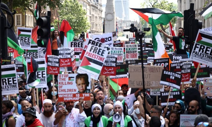 لندن: شهدت العاصمة البريطانية لندن، السبت، مظاهرة تطالب قادة مجموعة “الدول السبع”، بقطع دعمهم السياسي والعسكري لإسرائيل.وتأتي هذه المظاهرة تزامنا مع انطلاق أعمال قمة مجموعة السبع، الجمعة، بمدينة “كورنوال” جنوب غربي إنجلترا، والتي تستمر فعالياتها حتى الأحد.وتجمع عدد من المتظاهرين أمام مبنى رئاسة الوزراء البريطانية في لندن، مرددين هتافات “فلسطين حرة” و “أوقفوا الاحتلال”.ورفع المتظاهرون الأعلام الفلسطينية وصور الأطفال الذين قتلتهم إسرائيل في غزة.وانتقد المتظاهرون الدول العربية الموقعة على اتفاقية التطبيع مع إسرائيل.ودعا رئيس البعثة الفلسطينية في بريطانيا، السفير حسام زملط، خلال كلمة له أمام المتظاهرين، لدعم حق العودة للاجئين الفلسطينيين.من جانبه، قال جيريمي كوربين الزعيم السابق لحزب العمال في كلمة خلال المظاهرة: “مطالبنا واضحة جدا، إنهاء احتلال الضفة الغربية، سحب جميع المستوطنين وإنهاء سياسة الاستيطان وحصار غزة”.