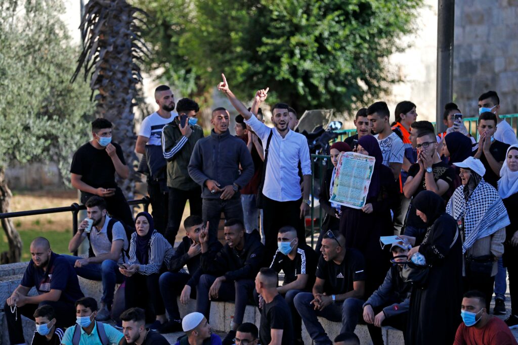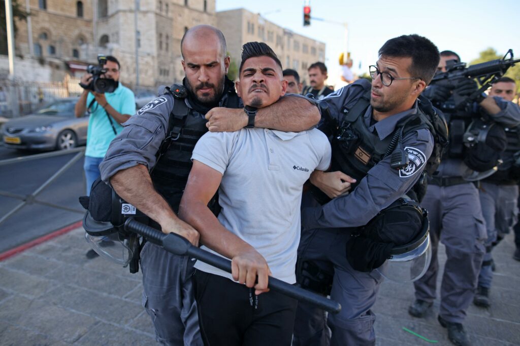 اعتقلت شرطة الاحتلال الإسرائيلي، مساء اليوم الخميس، عددًا من المقدسيين، خلال محاولتها منع وقفة دعا إليها مقدسيون نصرةً للنبي “محمد -صلى الله عليه وسلم” في ساحة باب العمود بالقدس المحتلة.وبحسب مصادر مقدسية، فإن قوات الاحتلال اعتقلت شابًا من ساحة باب العامود، وآخر من باب المصرارة، كما اعتقلت 3 أطفال من سكان مخيم شعفاط أثناء تواجدهم في شارع السلطان سليمان.واعتدت قوات الاحتلال على شابة و5 شبان آخرين في المنطقة، حيث استخدمت مركبة رش المياه العادمة لتفريق المقدسيين.ولاحقًا هاجمت شرطة الاحتلال الصحفيين وحاولت منعهم من تغطية الأحداث في المنطقة.وقفة نصرة للنبي صلى الله عليه وسلم في باب العمود .. تصوير وكالة الأنباء الفرنسيةوسعت قوات الاحتلال لإفراغ المقدسيين من ساحة باب العمود ومحيطه، إلا أن ذلك لم يمنع المئات منهم من المشاركة في الوقفة التي تم تنظيمها ردًا على الشتائم التي وجهها المستوطنون للنبي “محمد” خلال مسيرة “الأعلام” الاستفزازية يوم الثلاثاء الماضي.وردد المقدسيون خلال مشاركتهم بالوقفة شعارات وأناشيد نصرةً للرسول “محمد”.!!