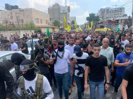 جنين .. شيع الاف المواطنين ، اليوم، جثمان الشهيد ضياء الدين محمد صمادعة “الصباريني” ، في مسيرة جماهيرية حاشدة تقدمها مسلحون من كتائب شهداء الاقصى وسرايا القدس.وبعد نقل جثمان الشهيد لمنزل عائلته التي القت نظرة الوداع الاخيرة عليه ، وودعته والدته واسرته بالزغاريد.وانطلق موكب التشييع، من مستشفى الشهيد خليل سليمان الحكومي في المدينة بعدما لف جثمانه بالعلم الفلسطيني .وردد المشاركون الهتافات الداعية لتصعيد المقاومة ضد الاحتلال واستمرار مقاومته بكل السبل .بينما اطلق مسلحون الاعيرة النارية طوال المسيرة مؤكدين، العهد والوفاء للشهيد، وجابت المسيرة شوارع جنين ومخيمها حيث اقيمت صلاة الشهيد على جثمانه الطاهر الذي انطلق من المسجد لشوارع المخيم لوداع الشهيد يتقدمهم عدد من المسلحين اللذين حملوا جثمانه على الاكتاف حتى استقروا في مقبرة شهداء معركة مخيم جنين .واقيم مهرجان تابيني للشهيد، تحدث فيه عطا ابو رميلة امين سر اقليم حركة فتح والقيادي في حركة حماس وصفي قبها ، واللذين وجهوا التحية للشهيد ودوره الوطني والنضالي في مقاومة الاحتلال ، كما اكدوا على ضرورة تعزيز الوحدة الوطنية لافشال المخططات والمشاريع الاحتلالية وانتزاع حقوق شعبنا العادلة والمشروعة ، واكدوا ، ان جرائم الاحتلال لن تنال من عزيمة وارادة شعبنا البطل .وكان استشهاد الصباريني اثار ردود فعل غاضبة، وقد ودعته مدينة نابلس بمسيرات حاشدة استمرة في مخيم بلاطة ومخيم عسكر ومخيم الفارعة وطوباس والزبابدة وقباطية وصولا لجنين .التي شهدت مسيرات حاشدة استمرت حتى ساعات الفجر وقد شهدت المدينة اضرابا تجاريا وحدادا كما نعت الشهيد حركة فتح ، واعتبرته احد ابطالها ومقاوميها وزفته شهيدا على درب الحرية والاستقلال ، كما نعت القوى الوطنية والاسلامية الصباريني وعاهدته على التمسك بدرب الشهداء حتى كنس الاحتلال والمستوطنين واقامة الدولة الفلسطينية المستقلة .الجدير ذكره، ان الصباريني من مخيم جنين اصيب بعدة عيارات نارية في 3/ 8/ 2021 خلال مشاركته في التصدي لقوات الاحتلال خلال اقتحامها للمدينة والذي نجم عنه 6 اصابات، ولخطورة حالته الصحية، نقل الى المستشفى العربي التخصصي في نابلس حيث خضع لعدة عمليات جراحية وبقي في غرفة العناية المكثفة حتى استشهاده.!!