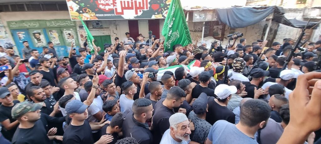 نابلس– شيع الاف المواطنين في مخيم بلاطة، عصر اليوم الثلاثاء، جثمان الشهيد الفتى عماد خالد حشاش (15 عاما)، والذي استشهد فجرا برصاص قوات الاحتلال التي اقتحمت المخيم لتنفيذ حملة اعتقالات.واصيب الفتى حشاش بعيار ناري حي اخترق جمجمته، بينما كان يقف على سطح منزله، محاولا عبر هاتفه النقال توثيق صورة لعملية اقتحام جنود الاحتلال للحي الذي تقطنه عائلته وسط المخيم، حيث عاجله احد الجنود باطلاق الرصاص عليه بشكل مباشر، وفقا لرواية عائلته.وقال مدير الاسعاف والطوارئ لدى الهلال الاحمر في نابلس، أحمد جبريل، بأن طواقم الاسعاف قد استلمت الفتى حشاش بينما كان مستشهدا ودماغه خارج جمجمته، ونقلته الى مستشفى رفيديا الحكومي.وانطلقت جنازة الشهيد الذي لف بالعلم الفلسطيني من أمام مستشفى رفيديا، بمشاركة ممثلي فصائل العمل الوطني، ومؤسسات وفعاليات المحافظة المختلفة.ونقل جثمان الشهيد الى منزل عائلته في المخيم محمولا على الاكتاف، حيث القى ذووه نظرة الوداع الاخير عليه، ومن ثم طاف به المشيعون شوارع المخيم وهم يرردون الهتافات التي تمجد الشهيد وتندد بجرائم الاحتلال.ومن ثم اقيمت الصلاة على الشهيد في مسجد عباد الرحمن عند المدخل الشمالي للمخيم، قبل ان يوارى الثرى في المقبرة الجديدة.والقيت خلال مراسيم التشييع كلمات التأبين التي دان المتحدثون فيها جرائم الاحتلال المتواصلة بحق ابناء شعبنا الفلسطيني، وخصوصا قتل الاطفال الذين بدم بارد، واكدوا على الوحدة الوطنية ورص الصفاف ونبذ الخلافات الداخلية.