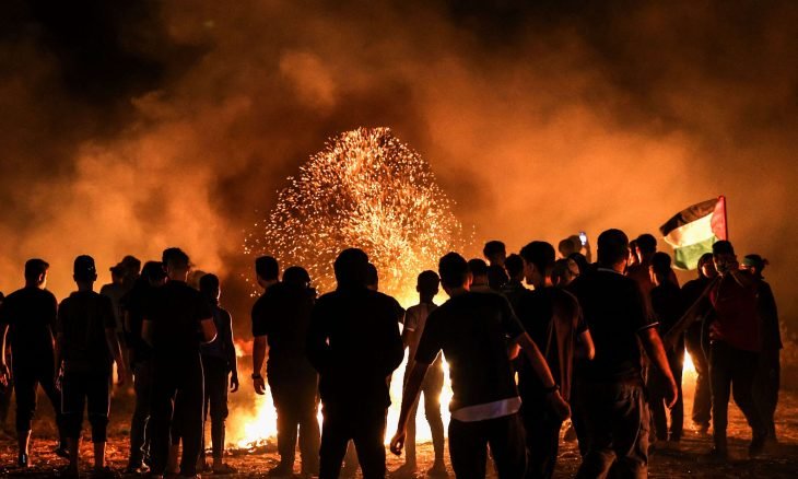 أصيب 18 مواطنًا، مساء الأحد، جراء إطلاق قوات الاحتلال الرصاص المطاطي وقنابل الغاز تجاه المتظاهرين المشاركين في فعاليات “الإرباك الليلي” لليلة الثانية على التوالي على حدود قطاع غزة.وبحسب وزارة الصحة بغزة، فإن إصابة واحدة فقط بالرصاص الحي وصفت بالمتوسطة، والإصابات الأخرى طفيفة بقنابل الغاز وشظايا مختلفة.ووفقًا لمصادر محلية، فإن الاحتلال استخدم طائرات “كواد كابتر” في إطلاق وابل من قنابل الغاز تجاه المتظاهرين في منطقة أبو صفية شرق جباليا، ما أدى لإصابة العديد منهم بالاختناق.فيما أشارت مصادر طبية، أن عدد من الشبان تعرضوا لإصابات مباشرة بالقنابل، فيما أصيب عدد من المسعفين خلال محاولتهم علاج الشبان.وتجمع المئات بالقرب من السياج الحدودي شرق جباليا ضمن تجدد فعاليات “الإرباك الليلي”، حيث أشعل الشبان الإطارات المطاطية وألقوا عبوات ناسفة محلية تجاه الجدار الأمني، كما أطلقوا بالونات حارقة ومتفجرة.