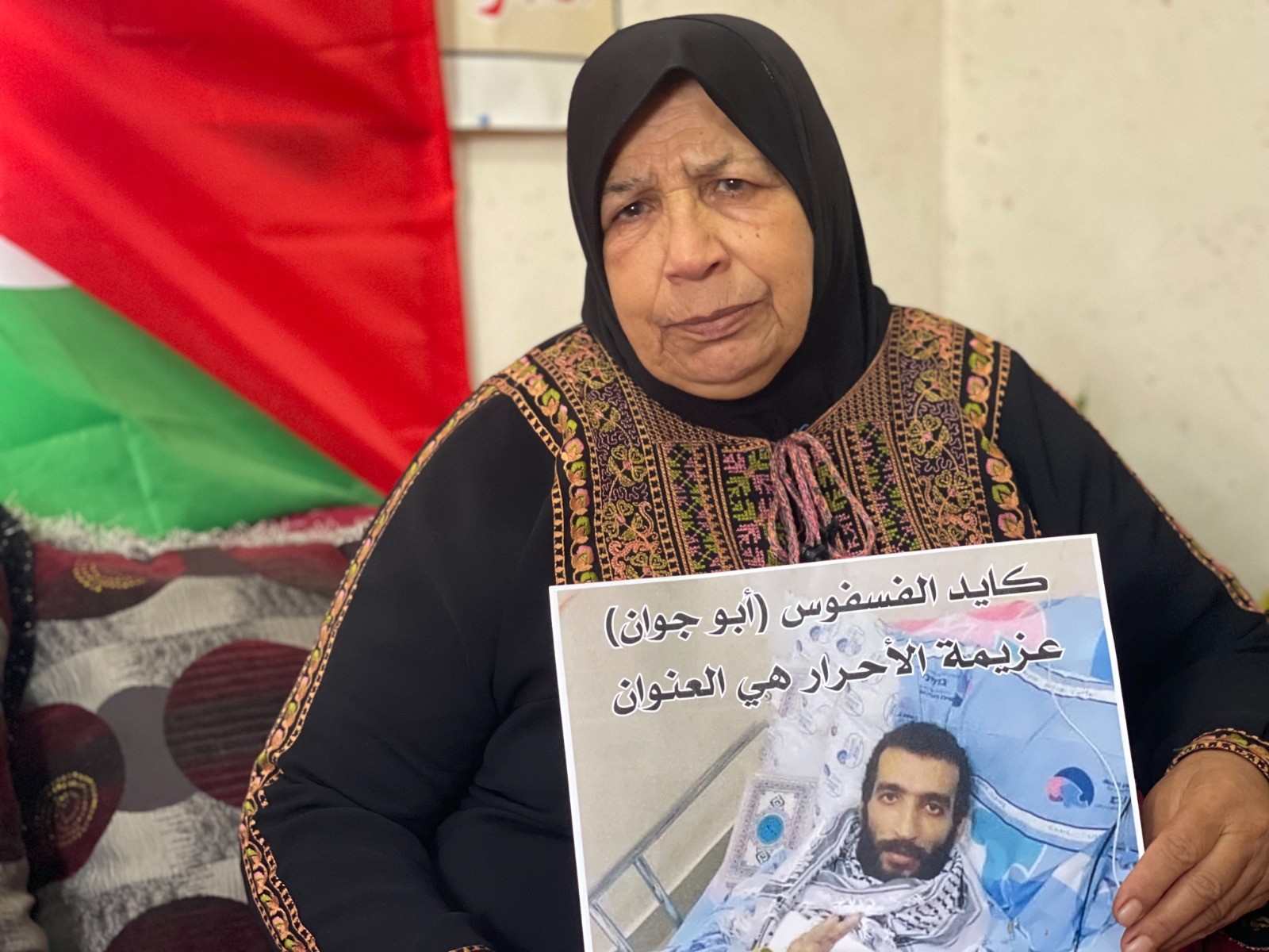 حذرت هيئة شؤون الأسرى والمحررين، اليوم الثلاثاء، من تفاقم الحالة الصحية للأسير المضرب عن الطعام منذ 111 يوما كايد الفسفوس، ووصوله لمرحلة صعبة وخطيرة للغاية قد تؤدي لاستشهاده في أي لحظة، فيما طالبت والدة الأسير بممارسة ضغوط على سلطات الاحتلال ليعود ابنها لمنزله.وفي كل لقاء مع صحافيين، تردد فوزية الفسفوس، والدة الأسير كايد عبارة: "بدي (أريد) ابني حيّ، ما بدي يستشهد".وأشارت الفسفوس إلى إن أربعة من أبنائها -بينهم كايد- معتقلون في سجون الاحتلال.وذكرت الفسفوس أنها شعرت بالفرح بعد تجميد قرار الاعتقال لابنها، على أمل أن يكون القرار التالي هو الإفراج عنه، لكنها صُدمت بقرار الاعتقال الإداري الجديد.وتمكنت الفسفوس من زيارة ابنها خلال فترة تجميد اعتقاله الإداري، وشاهدت تأثير الإضراب على جسده، وشددت على أنّ "حالته سيئة لدرجة، لا يستطيع أن يتحرك، لو نزل (سقط) عنه حرامه (غِطاؤه) لا يستطيع أن يرفعه، لا يستطيع بلع الماء، حالته الصحية متدهورة كثير كثير"، بحسب ما نقلت عنها وكالة "الأناضول" للأنباء.وأضافت: "جسمه كان باردا ولا أحد يعتني به، يرفض الفحوصات الطبية، جسمه فقط جلد وعظم، متعب جدا، ومع ذلك لا يريد أن يفك إضرابه إلا في البيت".أمَا وقد مُنعت من زيارته بعد إعادة الاعتقال الإداري، تتساءل أم كايد: "لماذا يُربط أسير خالِصْ (مُتعب) لا يستطيع أن يتحرك في التخت (السرير)؟ دولة ظالمة".ودعت الفسفوس "منظمات حقوق الإنسان وكل إنسان حر وشريف أن يقف مع كايد ويروحه (يفرج عنه) على الدار".وأكثر ما تخشاه والدة كايد، أن يفقد ابنها أعضاء حيوية من جسده، إذ تقول: "خايفة عليه من نوبة قلبية، أو تتلف الكلى".كايد، ليس أول المعاناة للمسنة الفسفوس، فهي والدة ستة شبان جميعهم اعتقلوا وأمضوا سنوات طويلة. وحول هذا تقول: "زرتهم في السجون، من عام 2000، وحتى الآن لم نجتمع على مائدة طعام".وإضافة إلى كايد، تعتقل سلطات الاحتلال حاليا ثلاثة من أشقائه، هم محمود وأكرم وحافظ.وهنا تسهب المسنة الفلسطينية في سرد سنوات اعتقال أبنائها الذي أمضوا مجتمعين أكثر من 52 عاما في سجون الاحتلال، ومات والدهم وهم في السجن: "حسن (أمضى) 11 سنة، خالد 9 سنوات، محمود 13 سنة، أكرم 7 سنوات، حافظ 5 سنوات، كايد 7 سنوات".وتقول إن ابنها كايد، مُضرب رفضا للاعتقال الإداري وحتى ينال حريته.وإضافة إلى الأسير الفسفوس، يواصل خمسة أسرى إضرابهم عن الطعام رفضا للاعتقال الإداري "أخطرهم حالة الأسير مقداد القواسمة المضرب لليوم 104على التوالي، وهو محتجز في العناية المكثّفة في مستشفى "كابلان"، بوضع صحي شديد الخطورة.وقال محامي الهيئة كريم عجوة، بعيد زيارته للفسفوس اليوم في مشفى "برازيلاي" إنه يعاني من آلام حادة في جميع أنحاء جسمه ويشعر بحرارة وسخونة بالعينين، ويعاني من تعب شديد وعدم القدرة على التحرك وإه لا يشعر بقدميه نهائيا.