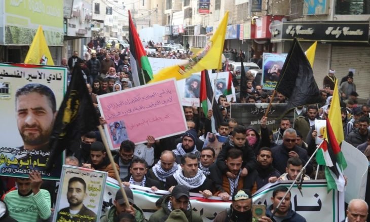 اعتصم مئات الفلسطينيين في مناطق متفرقة من الضفة الغربية، اليوم الثلاثاء، للمطالبة بإنقاذ حياة الأسرى الإداريين داخل سجون إسرائيل، لاسيما المضربين منهم عن الطعام.وجرى الاعتصام المركزي قبالة مقر اللجنة الدولية للصليب الأحمر في مدينة البيرة، وسط الضفة الغربية، حيث رفع المشاركون صورا للأسرى الإداريين ولافتات تطالب بالإفراج عنهم جميعا.وردد المعتصمون هتافات منددة بسياسة الاعتقال الإداري وأخرى تطالب بالإفراج الفوري عن الأسرى المضربين خاصة هشام أبو هواش المضرب عن الطعام لليوم الـ 141 على التوالي.وحذر الناطق الإعلامي باسم هيئة شؤون الأسرى والمحررين في منظمة التحرير الفلسطينية، حسن عبد ربه، من تراجع خطير للوضع الصحي للأسير أبو هواش وتزايد احتمالات تعرضه لموت مفاجئ.وقال عبد ربه إن حياة الأسير أبو هواش تقترب مع كل دقيقة تمر عليه وهو بهذه الحالة من الموت، والأطباء في المستشفى يتحدثون بشكل واضح عن إمكانية وفاته بشكل مفاجئ.وأضاف أنه يتعرض لغيبوبة متقطعة، ويعاني من ضعف في حاسة البصر وعدم القدرة على الكلام، إضافة إلى مشاكل في عضلة القلب وضمور في العضلات، محذرا من إقدام الأطباء على تغذيته قسرا.وذكرت وكالة الأنباء الفلسطينية الرسمية (وفا)، أن الإضراب الشامل عم منذ صباح اليوم، بلدة دورا جنوب الخليل التي ينحدر منها الأسير أبو هواش تضامنا معه.وأغلقت المحلات التجارية في دورا أبوابها منذ الصباح، فيما أعلنت نقابة العاملين في بلدية دورا عن تعليق الدوام اليوم لجميع الموظفين باستثناء الطواقم الميدانية التي لديها أعمال طارئة.وأعرب الاتحاد الأوروبي في بيان أصدره مساء أمس الاثنين، عن قلقه البالغ إزاء الحالة الصحية الحرجة للأسير أبو هواش.قال البيان إن “استخدام الاعتقال الإداري دون تهمة رسمية ما يزال مصدر قلق مستمر”، مؤكدا أن “من حق المحتجزين إبلاغهم بالتهم الكامنة وراء أي احتجاز ويجب أن يحاكموا محاكمة عادلة في غضون فترة زمنية معقولة أو أن يُطلق سراحهم”.وأبو هواش معتقل منذ الـ27 من شهر تشرين الأول/أكتوبر عام 2020، وحوّل إلى الاعتقال الإداريّ لمدة ستة شهور.من جهته، طالب وزير العدل الفلسطيني محمد الشلالدة، الصليب الأحمر والمحكمة الجنائية بالوقوف عند مسؤولياتهم القانونية والأخلاقية، بالإشراف على تنفيذ القواعد الخاصة لحماية حقوق الأسرى من الانتهاكات الجسيمة التي يتعرضون لها، خاصة الأسير أبو هواش.وقال الشلالدة، للإذاعة الفلسطينية الرسمية، إن أبو هواش “يتعرض لممارسات غير إنسانية وغير أخلاقية وغير قانونية من قبل السلطات الإسرائيلية ما يستدعي تحركا فوريا لإنقاذ حياته على صعيد المؤسسات الدولية والحقوقية”.وأضاف أن القانون الدولي الإنساني يجرم الانتهاكات الجسيمة بحق الأسرى، والتي تعتبر مساسا بكرامتهم.وأشار الشلالدة إلى أن إسرائيل تمارس الاعتقال الإداري والعقاب، دون تهمة ومحاكمة، وبالتالي استنادا للنظام السياسي والمحكمة الجنائية الدولية، فإن هذه الانتهاكات تعتبر جريمة حرب استنادا للمادة 85 من البروتوكول الأول لعام 1977 .كما أكد مندوب فلسطين لدى الأمم المتحدة والمنظمات الدولية الأخرى في سويسرا إبراهيم خريشة، استمرار التحركات للضغط على إسرائيل لإلغاء الاعتقال الإداري للأسير أبو هواش.وقال خريشة، للإذاعة الرسمية، إنه تم إعلام لجنة تقصي الحقائق التابعة لمجلس حقوق الإنسان الدولي بكل الانتهاكات التي يعاني منها الأسرى في سجون إسرائيل.وأشار إلى أن الدورة الرئيسية لمجلس حقوق الإنسان ستعقد في بداية شباط/فبراير القادم وسيتم خلالها اتخاذ عدة قرارات بشأن مساءلة ومحاسبة إسرائيل على “الاعتداءات” على الشعب الفلسطيني.وفي غزة دعت لجنة القوى الوطنية والإسلامية إلى اعتبار يوم الجمعة القادمة “يوم غضب شعبي عارم” في الأراضي الفلسطينية نصرة للأسير أبو هواش.من جهتها، هددت حركة الجهاد الإسلامي بتصعيد عسكري ضد إسرائيل في حال وفاة أبو هواش واستمرار المماطلة في الإفراج عنه.وصرح المت