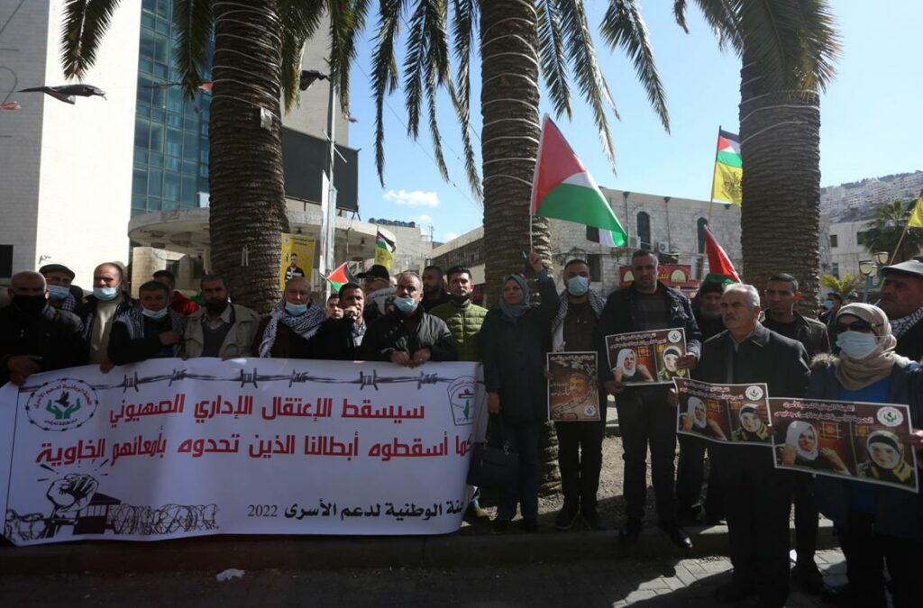 نظمت اللجنة الوطنية لدعم الاسرى، اليوم الخميس، وقفة في ميدان الشهداء وسط مدينة نابلس تضامنا مع الاسرى الاداريين المقاطعين لمحاكم الاحتلال، والاسرى المرضى.وحمل المشاركون في الوقفة الاعلام الفلسطينية وصور للاسرى، فيما رددوا الشعارات التضامنية مع الاسرى.والقى، محمود الصيفي، كلمة باسم اللجنة الوطنية، أكد فيها على أهمية التضامن مع الأسرى الإداريين المقاطعين لمحاكم الإحتلال الإسرائيلي، واصفا الاعتقال الإداري بانه غير قانوني، وان المحاكم لا تطبق فيها اي معايير للعدالة. وشدد الصيفي على أهمية إستمرار المقاومة الشعبية ضد الاستيطان وضد مارسات الاحتلال المختلفة بما فيها انتهاك حقوق الاسرى.بدوره، قال عضو لجنة التنسيق الفصائلي، نصر ابو جيش، بأن الأسرى المرضى يتعرضون لسياسة الإهمال الطبي المتعمد وفي مقدمتهم الأسير البطل ناصر أبو حميد، مطالبا جماهير شعبنا الفلسطيني بالوقوف الى جانب الأسرى بما يرتقي وتضحياتهم الجسام.