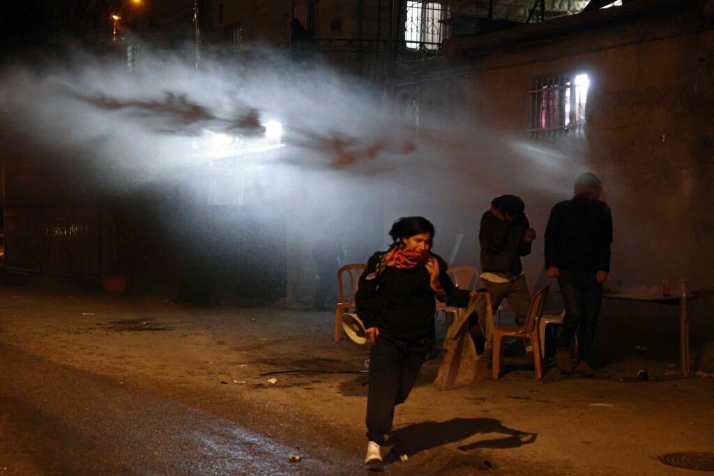 فرضت قوات الاحتلال الإسرائيلي، مساء اليوم الأحد، حصارًا على حي الشيخ جراح بمدينة القدس المحتلة، في وقت اعتدت فيه قوات الاحتلال على أهالي الحي والمتضامنين معهم، ما أوقع إصابات، واندلعت مواجهات تخللتها اعتداءات للمستوطنين على أعضاء الكنيست.وأكدت مصادر محلية، أن مواجهات اندلعت بين قوات الاحتلال والمستوطنين من جهة والمواطنين الفلسطينيين من جهة أخرى في حي الشيخ جراح، بالرغم من إغلاق قوات الاحتلال الحي ودفعها بتعزيزات كبيرة إليه.وأشارت المصادر، التي اشترطت عدم كشف هويتها، إلى أن مستوطنين متطرفين اعتدوا على ثلاثة من أعضاء عرب الكنيست، وهم: أحمد الطيبي وأسامة السعدي وعوفر كسيف، لدى وصولهم إلى منزل عائلة المواطنة المقدسية فاطمة سالم، في حي الشيخ جراح بالقدس المحتلة، المهددة بالإجلاء والترحيل مع باقي أفراد عائلتها، حيث كان عضو الكنيست المتطرف إيتمار بن غفير قد أقام صباحاً خيمة له هناك وحولها إلى مكتب.وهاجم العشرات من هؤلاء المتطرفين النواب الثلاثة، واعتدوا عليهم بالدفع وسط هتافات "الموت للمخربين"، بالرغم من وجود شرطة الاحتلال التي تعاملت مع الاعتداء بليونة ولم تتدخل لمنعه، فيما حمّل النواب المعتدى عليهم حكومة الاحتلال المسؤولية عن الاعتداء، وعن التداعيات المحتملة لما يجري في حي الشيخ جراح من اعتداء على المواطنين المقدسيين.وفي وقت لاحق، شرعت قوات الاحتلال بإخلاء المتضامنين مع عائلة سالم والمساندين لها بالقوة من منزل العائلة على وقع قنابل الصوت.وبالتزامن مع ذلك، بدأت بإخلاء المستوطنين من محيط منزل عائلة سالم ومن داخل الخيمة التي نصبها بن غفير، في وقت تفيد معلومات باعتزام سلطات الاحتلال تفكيك تلك الخيمة بموجب تسوية، تحدثت عنها تقارير إعلامية، طرحتها بلدية الاحتلال في القدس. وتقضي "التسوية" بإزالة الخيمة مقابل نصب كاميرات مراقبة ووضع حراسة دائمة على منزل كان استولى عليه أحد المستوطنين.ورغم إخراج المتضامنين من منزل عائلة سالم، إلا أن التوتر ما زال قائما في حي الشيخ جراح بين المواطنين ومجموعات كبيرة من المستوطنين، وسط ملاسنات ومشادات كلامية بين الجانبين، فيما قام الشبان برفع أعلام فلسطين على سطح بناية منزل عائلة سالم.وفي آخر حصيلة عن أعداد المعتقلين خلال مواجهات اليوم في الحي، ارتفع عددهم إلى 13 معتقلا تعرضوا جميعا للضرب والتنكيل من قبل قوات الاحتلال.أما فيما يتعلق بأعداد الإصابات في المواجهات، فوصلت إلى 14 مصابا، نقل 5 منهم إلى المستشفيات لتلقي العلاج.وكانت توافدت أعداد كبيرة من المستوطنين إلى حي الشيخ جراح انضمت إلى تجمع من المستوطنين يقوده بن غفير وطاقم من مساعديه من أتباع حركة "كهانا" المنحلة، بينهم باروخ مرزيل رئيس لجنة ما يسمى بـ"الأمن على الطرقات" وأحد أبرز مساعدي بن غفير.ونظم المستوطنون تظاهرة استفزازية وسط حي الشيخ جراح، تخللها إطلاق الهتافات العنصرية وشتم النبي محمد عليه السلام، إضافة إلى رفع أعلام دولة الاحتلال، وسط رقصات وغناء بدعم وتأييد من المتطرف بن غفير.في المقابل، وبالرغم من الحصار الذي فرض على حي الشيخ جراح، أدى عشرات الفلسطينيين، بينهم أهالي الشيخ جراح، صلاة المغرب قرب منزل عائلة المواطنة المقدسية فاطمة سالم، المهددة بإخلاء منزلها، حيث الخيمة التي أقامها بن غفير وحولها إلى مكتب له، فيما منعت قوات الاحتلال المواطنين الفلسطينيين من أداء صلاة العشاء هناك، وسط إطلاق الرصاص المطاطي على مجموعات من الشبان على مداخل الحي. وأصيبت المسنة فاطمة سالم بيدها خلال اقتحام المستوطنين حي الشيخ جراح صباح اليوم، كما أصيب طفل بقنبلة صوتية في يده.في حين جددت حراكات شبابية مقدسية دعوتها المواطنين المقدسيين إلى دعم وإسناد أوسع لأهالي حي الشيخ جراح في مواجهة الهجمة التي يتعرضون لها.من جانب آخر، اقتحم عشرات المستوطنين، اليوم، المسجد الأقصى المبارك بحراسة مشددة من قوات الاحتلال الإسرائيلي، ونفذوا جولات استفزازية، وأدوا طقوساً تلمودية في باحات ال