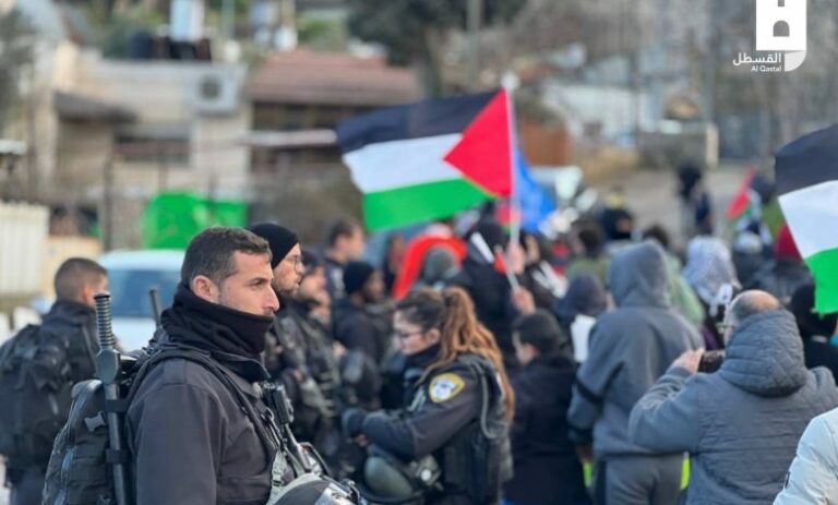 اعتدت قوات الاحتلال الإسرائيلي عصر اليوم الجمعة على الأهالي والمتضامنين، أثناء تواجدهم في حي الشيخ جراح بالقدس المحتلة.وأفادت مصادر مقدسية، بأن الأوضاع في الحي ما زالت متوترة لليوم الـ 13 على التوالي، بين قوات الاحتلال والمستوطنين، وبين الأهالي والمتضامنين معهم.وبيّنت المصادر أن الأهالي والمتضامنين تجّموا عصر اليوم في الحي، وهتّفوا، ورفعوا العلم الفلسطيني أمام قوات الاحتلال في حي الشيخ جراح.وفي الوقت ذاته، اقتحمت مجموعة من المستوطنين الحي، وحاولت استفزاز الأهالي برفع أعلام الاحتلال، وسط حماية قوات الاحتلال،وعقب ذلك، استنفرت قوات الاحتلال بشكلٍ مُكثّف في الحي، وفرضت تشديدها على الأهالي والمتضامنين معهم، وسادت أجواء من التوتر.وأشارت المصادر إلى أن قوات الاحتلال اعتدت على الشُبّان بالدفع والضرب، وقامت بدفع الناشط المقدسي محمد أبو الحمص أثناء رفعه علم فلسطين في وجه المستوطنين.من ناحية اخرى أصيب 12 مواطناً بجروح، والعشرات بحالات اختناق جراء إطلاق الغاز المسيل للدموع اليوم الجمعة،خلال مواجهات مع قوات الاحتلال اندلعت بعد قمع قوات الاحتلال الإسرائيلي للمسيرات الأسبوعية الرافضة للاستيطان وإقامة بؤر استيطانية في بلدتي بيتا وقريوت جنوب شرق نابلس، وبيت دجن شرق نابلس.وأوضح مدير الإسعاف والطوارئ في الهلال الأحمر بنابلس احمد جبريل ، بأن طواقم الإسعاف تعاملت في بيت دجن مع 10 إصابات بالاختناق بالغاز المسيل للدموع، و5 إصابات بجروح بالرصاص المعدني المغلف بالمطاط و6 إصابات وقوع .إلى ذلك، أشار جبريل الى أن طواقم الهلال تعاملت في بيتا مع اصابة واحدة وقوع، فيما نوه الى أن قوات الاحتلال جرفت الطرق في بيتا وتمت إعاقة عمل طواقم الإسعاف.!!