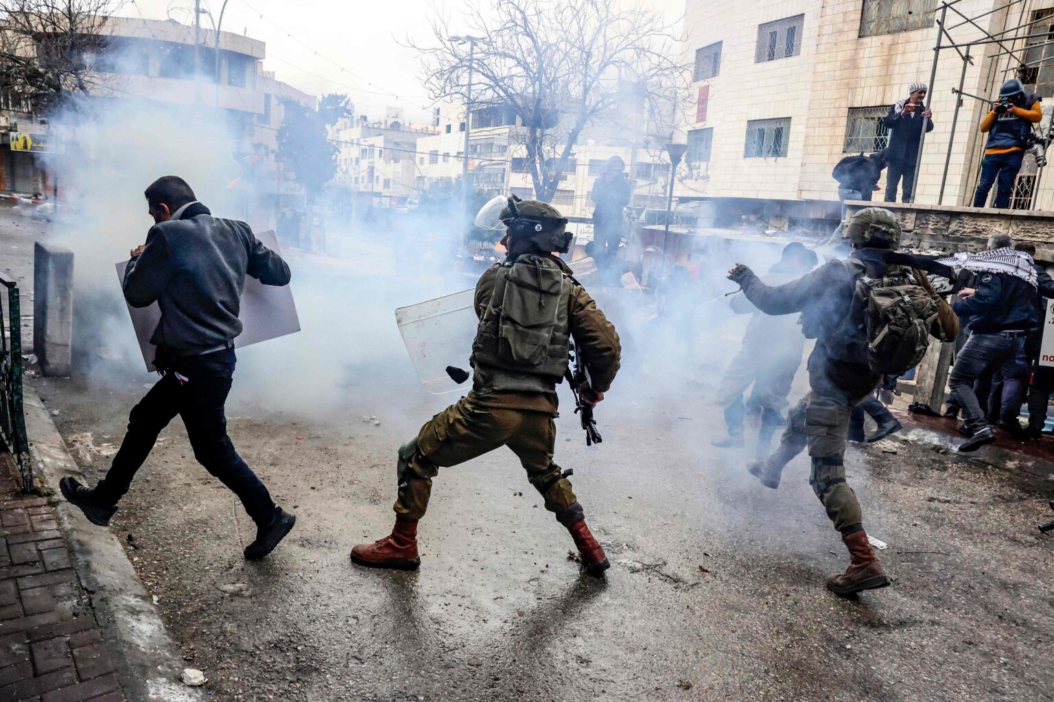 واصلت قوات الاحتلال الإسرائيلي، اعتداءاتها بحق الفلسطينيين مع استمرار اقتحامها للمدن والبلدات والقرى المختلفة من القدس والضفة الغربية.وبحسب مصادر مقدسية، فإن عشرات المستوطنين اقتحموا المسجد الأقصى منذ ساعات الصباح، وأقاموا ندوات توراتية.وفي السياق، اقتحمت قوات الاحتلال بلدة كفر عقب، ومخيم قلنديا، إلى الشمال من العاصمة المحتلة، وسط إطلاق لقنابل الغاز المسيلة للدموع، حيث اندلعت مواجهات في تلك المناطق.وذكر الهلال الأحمر أن 14 مواطنًا أصيبوا خلال المواجهات في قلنديا وتم تقديم العلاج لهم ميدانيًا.فيما أصيب عدد من المواطنين، بالات اختناق جراء إطلاق جنود الاحتلال قنابل الصوت والغاز على مشاركين بفعالية في جبل الريسان قرب قرية راس كركر غرب رام الله.وأفادت مصادر صحفية، بأن جنود الاحتلال أطلقوا قنابل الغاز والصوت، كما اعتدوا على طاقم هيئة مقاومة الجدار والاستيطان وعلى المشاركين في فعالية شعبية لمناسبة اليوم الوطني للزراعة، ومنعوا المواطنين من الوصول الى أراضيهم، لزراعة الأشجار.وكانت سلطات الاحتلال قد أصدرت في تموز / يوليو 2019، قرارا بالاستيلاء على جبل “الريسان”، بذريعة “عسكرية”.كما أصيب عدد من المواطنين، بالاختناق بالغاز المسيل للدموع، خلال مواجهات مع قوات الاحتلال الإسرائيلي والمستوطنين، في قرية بيت دجن شرق نابلس.وأفاد عضو لجنة الدفاع عن أراضي بيت دجن سليم أبو جيش، بأن المواجهات اندلعت عقب طرد أهالي القرية لمستوطنين أثناء رعيهم الأبقار في الأراضي الزراعية في منطقة الموقعة شرق القرية، حيث تدخل جيش الاحتلال وأطلق الرصاص المعدني المغلف بالمطاط وقنابل الغاز المسيل للدموع، ما أدى لإصابة عدد من المواطنين بالاختناق.وهاجم مستوطنون، مركبات المواطنين قرب قرية برقة ومنطقة المسعودية الأثرية، شمال غرب نابلس.وقال مسؤول ملف الاستيطان شمال الضفة غسان دغلس، إن عددا من المستوطنين هاجموا مركبات المواطنين قرب القرية بالحجارة، ما أدى إلى تضرر بعضها، مشيرا إلى أن أهالي القرية تصدوا لهم.وأضاف أن قوات الاحتلال شددت من إجراءاتها على الطريق الواصلة بين جنين ونابلس ومدخل قرية برقة.واندلعت، مواجهات مع قوات الاحتلال الإسرائيلي في بلدة تقوع شرق بيت لحم. وأفادت مصادر أمنية، بأن المواجهات اندلعت على المدخل الشمالي بين الشبان وقوات الاحتلال، تخللها اطلاق قنابل الغاز والصوت، دون أن يبلغ عن إصابات. فيما ذكرت مصادر إسرائيلية، أن مستوطنين أصيبا جراء رشق سيارتهما بالحجارة قرب نعلين، وأن أضرار ًاجسيمة لحقت في السيارة.