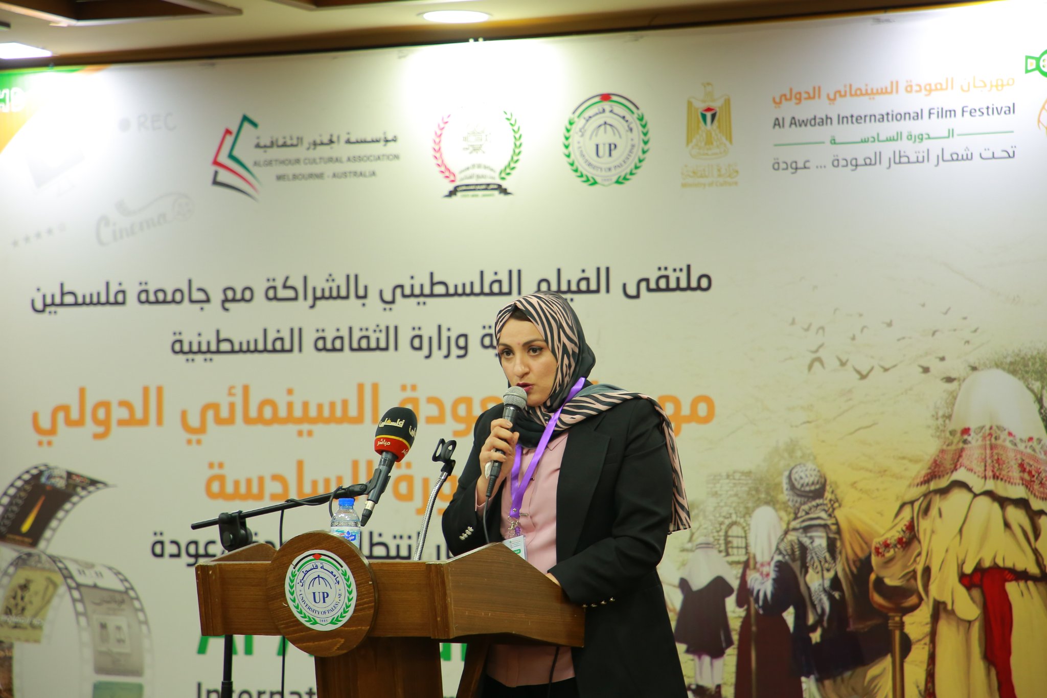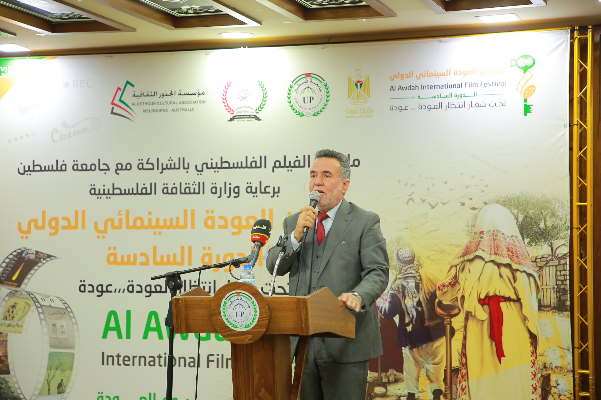 بإسم الشهيدة الفلسطينية الصحفية شيرين أبو عاقلة وتحت شعار انتظار العودة عودة وبرعاية وزارة الثقافة الفلسطينية أطلقت مؤسسة الجذور الثقافية و ملتقى الفيلم الفلسطيني و من خلال المنبر الأكاديمي للشريك الأساسي جامعة فلسطين مهرجان العودة السينمائي الدولي في دورته السادسة.وذلك بحضور كلًا من سعادة المهندس"عماد الأغا"رئيس مجلس إدارة جامعة فلسطين، سعادة "أ.د.جبر الداعور" رئيس الجامعة ، د."شادي عويضة" نائب رئيس الجامعة للشؤون الإدارية والمالية، د."حنان العكلوك" عميد كلية الإعلام وتكنولوجيا المعلومات، المخرج "سعود مهنا"مؤسس المهرجان ورئيسه، المخرج "يوسف خطاب"مدير المهرجان، وعمداء الكليات وأعضاء الهيئتين الأكاديمية والإدارية بالجامعة، وعدد كبير من الفنانين والنقاد ووسائل الاعلام العربية والمحلية والدولية، ولفيف من المخاتير والوجهاء.وابتدأ الحفل بوقفة حداد على روح الاعلامية الفلسطينية المناضلة شيرين أبو عاقلة والتي اغتيلت خلال تأديتها واجبها الوطني الإعلامي.حيث افتتح المهندس"عماد الأغا" كلمته معرباً عن أسفه في اغتيال الصحفية الفلسطينية شيرين أبو عاقلة ابنة كل بيت فلسطيني، مشيرًا إلى أن الشعب الفلسطيني كافة لن يتوانى عن إعادة الحقوق و التمسك بحق العودة قلبًا وقالبًا.مؤكدًا أن انطلاق مهرجان العودة السينمائي في جامعة فلسطين في ذكرى يوم النكبة الموافق 15/ آيار والذي أطلق عليه انتظار العودة عودة وتمت تسميته بعد حادثة اغتيال شيرين أبو عاقلة على اسمها تكريما لنضالها و توكيدا على الحق الفلسطيني والمطالبة بحق العودة رغم مرور 74 عام على الحدث.و ذكر خلال كلمته ان إحياء ذكرى العودة في ظل استشهاد الصحفية شيرين ابو عاقلة لم يكن جريمته الاولى، بل جرائمه مستمرة بحق كافة العوائل كعائلة دوابشة و التي اعلنت جامعة فلسطين عن منح شهادة باسم الطفل أحمد دوابشة ، و من منبر الجامعة أعلن سعادته عن منحة كلية الإعلام وتكنولوجيا المعلومات باسم شهيدة الحقيقة شيرين ابو عاقلة، و سيتم إطلاق اسمها على استديو الإذاعة والتلفزيون في جامعة فلسطين تقديرًا لدورها الإعلامي الوطني، كما ذكر دور الأسير في تحديه للاحتلال وهو قابع في سجنه وترحم على شهيد اليوم الأسير داوود الزبيدي والذي أعلن عن استشهاده في سجون الاحتلال، متمنيًا نيل الحرية لجميع الاسرى.وفي كلمة مسجلة لسمو وزير الثقافة الفلسطينية د."عاطف أبو سيف" أكد ان دور الثقافة الفلسطينية دور وطني يحافظ على الموروث الثقافي و يحمي الهوية الفلسطينية ، وذكر ان الأعمال الدرامية الفلسطينية والأفلام الوثائقية يجب ان تكون داعمة للرواية الفلسطينية من مواصلة صناعة السينما وكتابة القصيدة ودعم التراث.وفي كلمة أ.د."جبر الداعور " بعد ترحمه على شهيد اليوم الاسير "داوود الزبيدي" شقيق الاسير الفلسطيني زكريا الزبيدي وقدم واجب العزاء لكل الشعب الفلسطيني بوفاته ووفاة الصحفية الفلسطينية الشهيدة شيرين ابو عاقلة ،اكد ان إقامة جامعة فلسطين هذا المهرجان هو تشجيعًا للأعمال الفنية الفلسطينية التي تساهم في ترسيخ الحقوق والإبقاء على قضايا الوطن حاضرة في وجدان الشعوب.وفي كلمة المخرج "سعود مهنا" مؤسس ورئيس المهرجان والتي اشار فيها ان مهرجان العودة الفلسطيني شارك به 233 مخرج من 38 دولة في العالم ، وسيتم من خلالها إطلاق جائزة مفتاح العودة لأفضل فيلم عن المرأة باسم المناضلة الجزائرية جميلة بو حيدر ، وايضا مفتاح العودة لأفضل فيلم عن العودة باسم مرزوق الغانم ، كما وسيتم إطلاق جائزة مفتاح العودة لأفضل فيلم عن الأسرى باسم الأسير كريم يونس، وجائزة مفتاح العودة للنقاد باسم الشهيدة الصحفية الفلسطينية شيرين أبو عاقلة.كما أشارت د."حنان العكلوك" ان استشهاد الصحفية شيرين أبو عاقلة هو دافع لإطلاق دفعة جديدة من الخريجين الإعلاميين الذين يسيرون على نهجها في نقل الحدث الحقيقي .وأردف المخرج يوسف خطاب ان مهرجان العودة السينمائي جاء ليعزز الرواية الفلسطينية المتعلقة بحق عودة اللاجئين ال