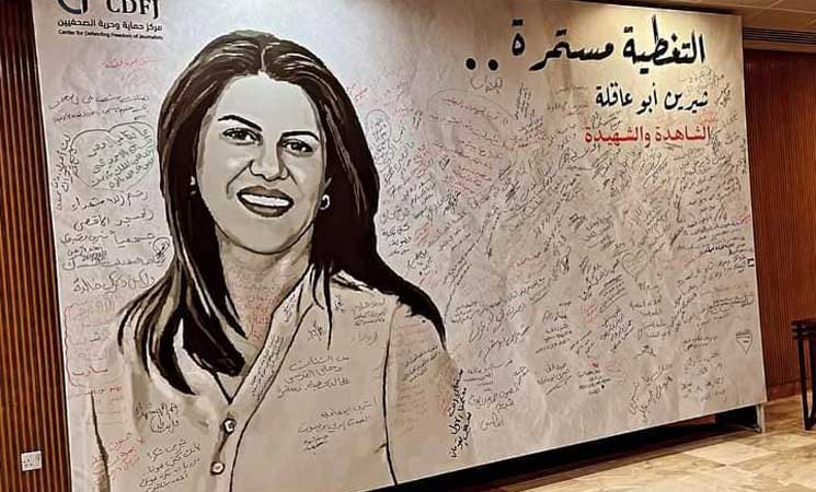 عمان- بكلمات مزجت بالدموع والغضب، وثّق زملاء مراسلة قناة الجزيرة في فلسطين الشهيدة شيرين أبو عاقلة محطّات من سيرتها المهنية والإنسانية والنضالية، خلال جلسة استذكارية “مؤثّرة” نظّمها مركز حماية وحرية الصحافيين مساء الثلاثاء في العاصمة الأردنية عمان، وذلك بعد أقل من شهرين على اغتيالها على أيدي جنود الاحتلال الإسرائيلي، دون أن يعلن حتى اللحظة عن فتح تحقيق دولي في الحادثة.وبحضور عدد كبير من السياسيين والكتاب والإعلاميين، رسمت شهادات قدمتها كل من مراسلة الجزيرة في رام الله، جيفارا البديري، ومراسلة القناة في القدس، نجوان سمري، في الاستذكار الذي أداره مؤسس مركز حماية وحرية الصحافيين، نضال منصور، لوحة مرويّة لسيرة “نجمة القدس” أبو عاقلة، مزجت بين وجع الغياب وألم الفقد، والغضب من استباحة دمها كشاهدة سخّرت حياتها لقضية الشعب الفلسطيني ومعاناته اليومية مع الاحتلال، إذ دخلت بها كل بيت عربي بلا استئذان.كما تحدث في الاستذكار، كل من النائب السابقة، ديمة طهبوب زوجة مراسل الجزيرة طارق أيوب، الذي استشهد في بغداد بقذيفة أمريكية استهدفت مكاتب القناة، ومدير البرامج في مؤسسة الحق الفلسطينية، تحسين عليان، والصحافي الأردني جهاد أبو بيدر الذي زامل الشهيدة أيام الدراسة في جامعة اليرموك الأردنية.وقال منصور “التغطية مستمرة.. هكذا كانت تقول، وعلى هذا الدرب نسير، اغتيلت شيرين أبو عاقلة، ولكنَ قتلَ الشهود لا يقتلُ الحقيقة”.وأضاف منصور “نعرفُ الجناةَ.. نعرفهم قبل أن يقتلَ القناصُ شيرين بدم بارد.. نعرفهم حين قتلوا الكاتب والمناضل “غسان كنفاني”، وقبله وبعده كان الشهداء يسقطون حتى تظل فلسطين حاضرةً.. وكان دمهم يُشير إلى القتلة بوضوح.. إلى الاحتلال الإسرائيلي الغاشم”.واقتبس منصور من رثاء الإعلامي الفلسطيني، محمد ضراغمة، لشيرين “كان رحيلكِ معركةَ مواجهةٍ، مثلَ معاركِ باب العمود، وبوابات الحرم الشريف، والحائط الغربي، وباب الرحمة، والمصلى المروانيّ”.وكشفت جيفارا البديري في شهادتها، عن أثر حادثة اغتيال أبو عاقلة على الفلسطينيين، لافتة إلى أن مكتب الجزيرة تحوّل إلى “مزار” للشهيدة، وأن آلاف الاتصالات تلقتها من محبيها، من بينهم اتصالان من أهم الأسرى الفلسطينيين القابعين في سجون الاحتلال، وقالت “أحد الأسيرين مضى على أسره 42 عاما، وعرف عنه صلابته، إلا أنه أجهش بالبكاء في الاتصال حزنا على شيرين، ولن أذكر أسماءهما حتى لا يتعرضا للعزل الانفرادي”.وأوضحت البديري، أن أبو عاقلة رسمت “مشهدا من مشاهد” تحرير فلسطين خلال جنازتها المهيبة التي قطعت 140 كيلومترا، وتكلل هذا المشهد في رفع العلم الفلسطيني في شوارع القدس المحتلة، رغما عن أنف الاحتلال.واستذكرت البديري مآثر الشهيدة أبو عاقلة الإنسانية والمهنية، معتبرة اياها معلمة لها في مسيرتها المهنية التي بدأت في تغطية أحداث حصار كنيسة المهد، وقالت البديري “قلت لشيرين إن هذا الحدث أكبر مني، لكنها أصرت على استمراري وقالت لي مع التدريب كل شيء بيصير”.وأشارت البديري إلى أن أبو عاقلة، هي التي أسست روحا مختلفة لتغطية القضية الفلسطينية، تجسدت في جعل “الإنسان هو القصة” على مدار نحو 23 عاما من التغطية المستمرة، وأضافت “شيرين كانت ضيفة لطيفة على كل بيت عربي وتدخله بلا استئذان، ما قبل شيرين ليس هو ما بعدها، لقد رسمت اللوحة الأولى من مشهد تحرير فلسطين برفع العلم الفلسطيني في القدس وأقيمت حرب في ذلك اليوم حتى لا يسير نعشها مع العلم.. واليوم قد نحتاج إلى سنوات لنعود إلى العمل في الميدان، شيرين اغتيلت دون أي حماية”.وفيما أكدت البديري قرع أجراس كنائس كل الطوائف المسيحية في القدس لمدة 3 ساعات و45 دقيقة متواصلة، في حادثة لم تشهدها المدينة سوى للقائدين الفلسطينيين؛ عبد القادر الحسيني، وعز الدين القسام، كشفت عن تلقي مكتب الجزيرة “ثوب فلسطيني مطرز” حاكته سيدات من قطاع غزة “غرزة غرزة”، ونُقل عبر عدة مدن فلسطينية حتى أوصلته سيدة من مدينة الخليل و