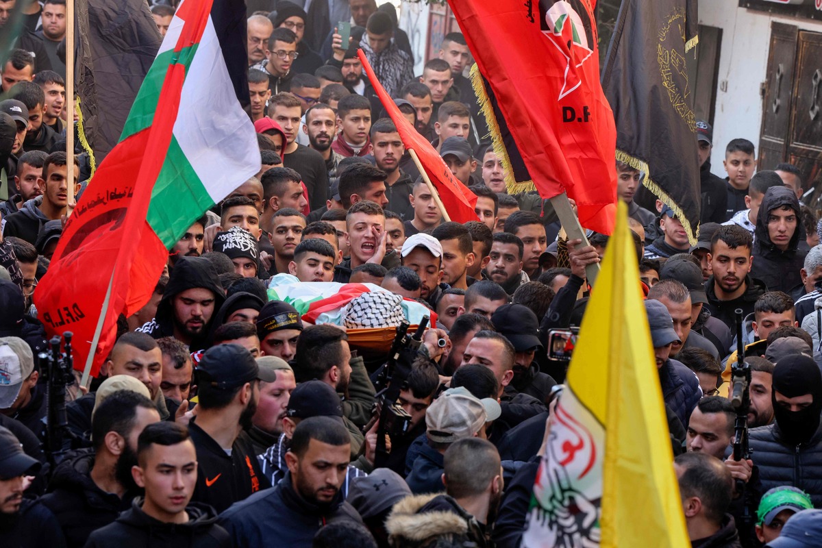 شيع آلاف المواطنين في طوباس، مساء اليوم الثلاثاء، جثمان الشهيد الطفل محمود العايدي (17 عاماً) إلى مثواه الأخير.وانطلقت جنازة عسكرية للشهيد من مستشفى رفيديا بمدينة نابلس، وصولاً إلى مستشفى طوباس التركي الحكومي، ومنه إلى منزل عائلته في مخيم الفارعة، التي ألقت عليه نظرة الوداع الأخير.وحمل المشيعون جثمان الشهيد العايدي على الأكتاف، وجابوا به أزقة المخيم، مرددين الهتافات الغاضبة والمنددة بالجرائم التي ترتكبها قوات الاحتلال الإسرائيلي بحق شعبنا، وبعمليات القتل اليومية.وأدى المشيعون صلاة الجنازة على جثمان الشهيد العايدي بمسجد أبو بكر الصديق في المخيم، قبل أن يوارى الثرى.وكان العايدي أصيب برصاص الاحتلال الحي بالرأس خلال اقتحام مخيم الفارعة فجر اليوم، وأعلنت وزارة الصحة في وقت لاحق عن استشهاده في مستشفى رفيديا الحكومي متأثرا بإصابته.وفي الخليل، شيعت جماهير فلسطينية في بلدة يطا، الشهيد الشاب هارون أبو عرام، الذي ارتقى متأثرا بإصابته من قبل قوات الاحتلال قبل نحو عامين.وانطلق موكب التشييع من أمام مستشفى يطا الحكومي، وتمت الصلاة على جثمانه في مسجد الصادق الأمين بمنطقة رقعة وسط البلدة، بعد إلقاء نظرة الوداع عليه في منزل عائلته. وأقيمت جنازة ومراسم عسكرية للشهيد قبل مواراته الثرى.