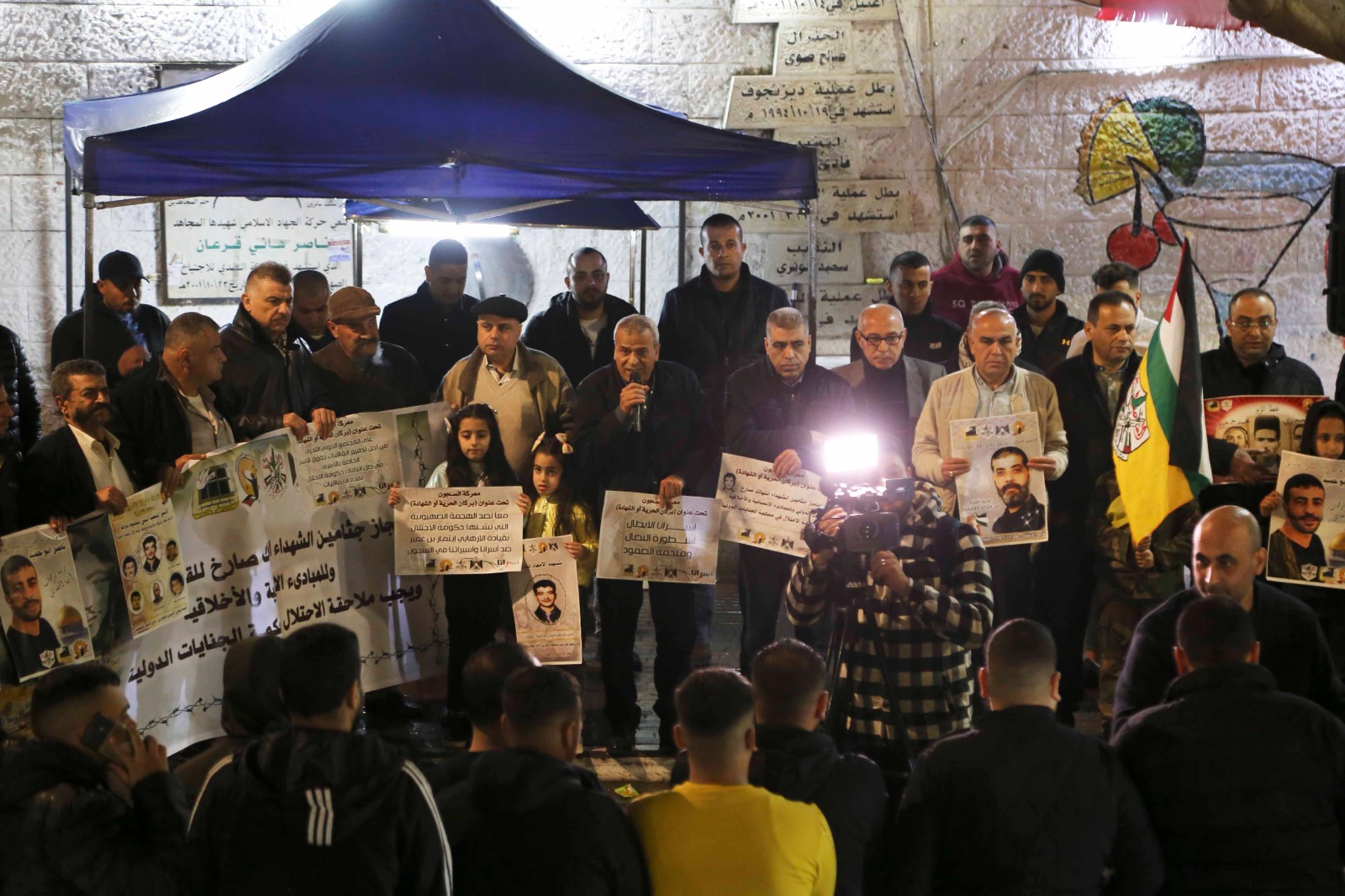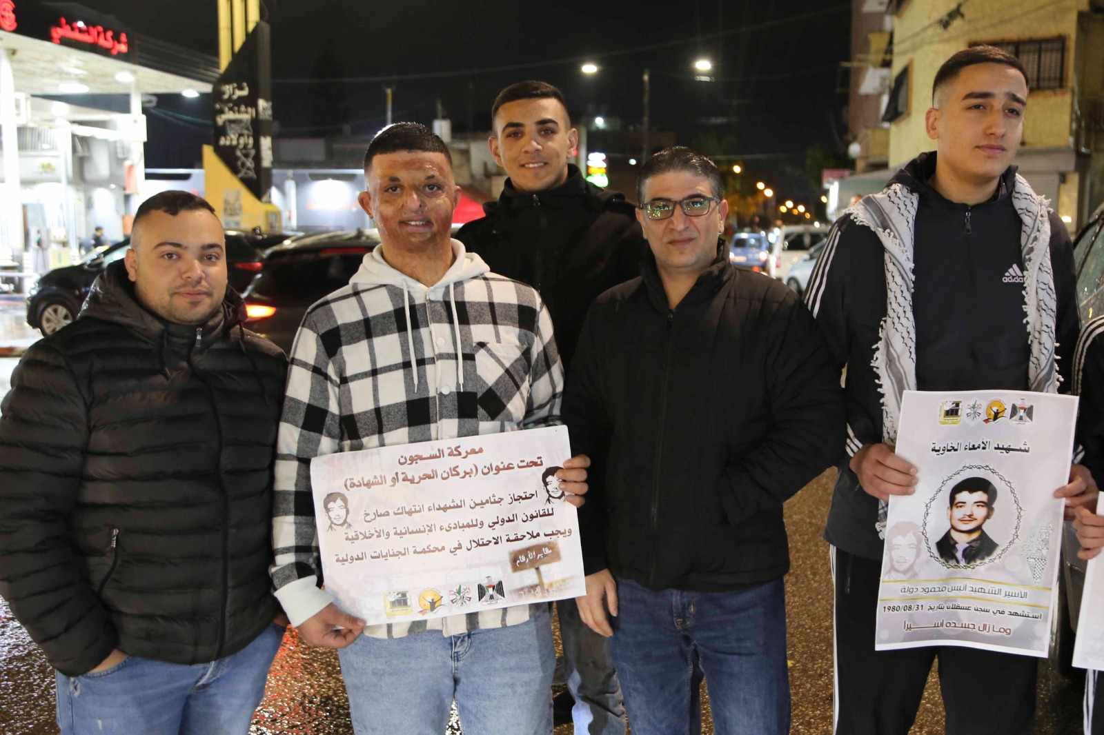 نظمت حركة التحرير الوطني الفلسطيني فتح إقليم قلقيلية وهيئة شؤون الأسرى والمحررين ونادي الأسير بالتعاون مع مؤسسات المحافظة وقفة تضامنية مع الأسرى الذين ينفذون برنامج العصيان في سجون الاحتلال وللمطالبة باسترداد جثامين الشهداء، وذلك مساء اليوم في ميدان الشهيد أبو علي إياد وسط مدينة قلقيلية.وتأتي هذه الوقفة استجابة لدعوة لجنة الطوارئ الوطنية العليا للحركة الأسيرة مع اقتراب معركة الإضراب عن الطعام وهي وقفة بالتزامن مع باقي المحافظات تحت شعار الثلاثاء الحمراء.وشارك في الوقفة اللواء رافع رواجبة محافظ محافظة قلقيلية ونائبه اللواء حسام ابو حمدة، وامين سر حركة فتح محمود ولويل وممثلون عن حركة فتح والقوى الوطنية، ورئيس بلدية قلقيلية فيصل شريم ورؤساء البلديات والمجالس المحلية، ومدير نادي الاسير لافي نصورة ومدير هيئة الاسرى والمحررين نائل غنام، وممثلو المؤسسات المدنية والعسكرية وفعاليات رسمية وشعبية من المحافظة واسرى محررون وعائلات الاسرى.ووجه المحافظ التحية إلى الأسرى البواسل الذين يدافعون عن كرامة الأمة، مؤكدا أن الأسرى في ظل هذا الظرف العصيب يتعرضون للقتل بسبب الإهمال الطبي والإجراءات القاسية ضدهم من قبل حكومة "بن جفير" وأعوانه الذي يدعو دائما إلى تصفيتهم وقتلهم، داعياً أحرار العالم الاستجابة لرسالة الأسرى الذين يعانون من ظروف صعبة تزداد سوءاً يوماً بعد يوم، مطالباً بوقف حالة التغول التي تقوم بها حكومة اليمين المتطرف بحق الشعب الفلسطيني والحركة الأسيرة، داعياً الشعب الفلسطيني إلى مساندة الأسرى وتفعيل المقاومة الشعبية.وفي كلمته عن حركة فتح حيا مروان خضر صمود اسرانا البواسل في سجون الاحتلال، مستهجنا ما يقوم به الاحتلال من اجراءات فاشية بحقهم ظنا منه انه يستطيع كسر ارادتهم وكسر ارادة شعبنا، مؤكدا ان الاحتلال مصيره الى زوال ومعركتنا معه معركة وجود وسننتصر ونقيم دولتنا المستقلة وعاصمتها القدس الشريف.وبدوره عن نادي الاسير وهيئة شؤون الاسرى والمحررين اكد لافي نصورة ان الاسرى يخوضون معركة العصيان مع ادارة السجون لليوم التاسع والعشرون ضد اجراءات حكومة اليمين المتطرف بحقهم وصولاً لمعركة الاضراب عن الطعام تحت عنوان بركان الحرية او الشهاده بداية شهر رمضان المبارك .واضاف نصورة ان الاسرى لن يسمحو للمتطرف "بن جفير" وحكومته بحرمانهم حقوقهم وسحب الانجازات التي جاءت نتيجة تضحيات جسام راح ضحيتها مئات الشهداء، الامر الذي يتطلب منا الوقوف بحانب من افنوا اعمارهم في سبيل ان نحيا بحرية وكرامه، كما وطالب المجتمع الدولي الضغط على حكومة الاحتلال للافراج عن جثامين الشهداء المحتجزه كون هذا الامر يشكل انتهاكاً صارخاً للقانون الدولي وللمبادىء الانسانيه.!!