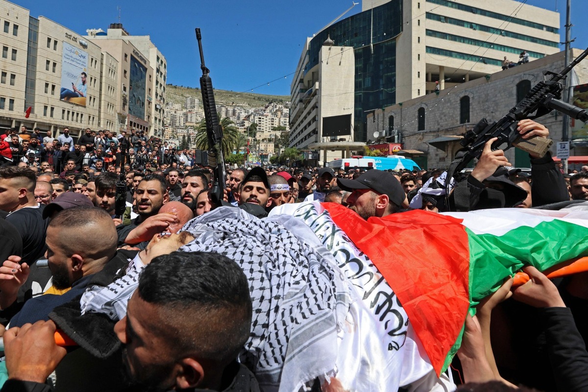 شيعت جماهير فلسطينية غفيرة، اليوم الإثنين، جثماني الشهيدين محمد سعيد الحلاق، ومحمد جنيدي أبو بكر في مدينة نابلس.وانطلق موكب التشييع من أمام مستشفى رفيديا وصولاً إلى دوار الشهداء حيث أقيمت صلاة الجنازة، لينقل كل منهما إلى مثواه الأخير في مخيم العين وبلدة الجنيد.وارتقى الشهيدين أبو بكر والحلاق برصاص قوات الاحتلال الإسرائيلي خلال اقتحامها مدينة نابلس صباحاً، واندلاع مواجهات في المنطقة أدت إلى إصابة 55 مواطنا بالاختناق واعتقال مواطنين اثنين.!!