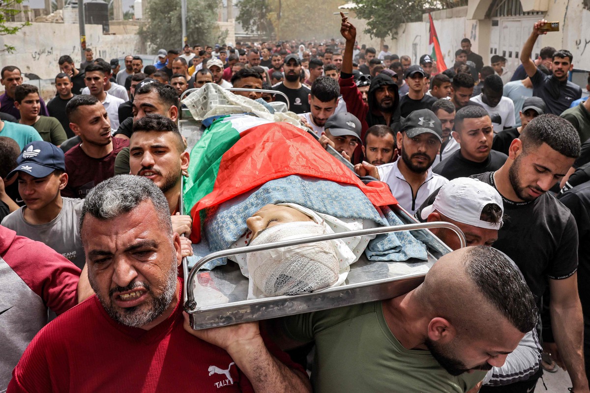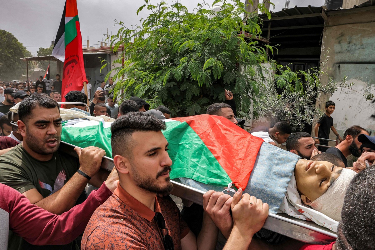 شيعت جماهير فلسطينية غفيرة،امس الإثنين، جثمان الشهيد محمد فايز بلهان (15 عاماً) الذي ارتقى برصاص الاحتلال الإسرائيلي في مخيم عقبة جبر، جنوب أريحا.وشيع المئات جثمان الشهيد بلهان محمولا على الأكتاف في مسيرة انطلقت من أمام مستشفى أريحا الحكومي، بعد أن ألقى ذووه نظرة الوداع عليه، وصولا إلى مسقط رأسه في مخيم عقبة جبر، والصلاة عليه في مسجد العباسية بالمخيم، ومواراته الثرى في مقبرة المخيم.وهتف المشيعون خلال التشييع عبارات غاضبة تنديدا بجرائم الاحتلال بحق أبناء شعبنا.!!