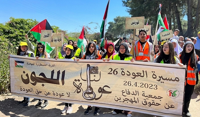 شارك الآلاف من الفلسطينيين في مناطق الـ48 في مسيرة العودة الـ26 المقامة هذا العام في أراضي قرية اللجون المهجرة.ورفع المشاركون في المسيرة الأعلام الفلسطينية ولافتات حملت أسماء القرى الفلسطينية المهجرة والأسير وليد دقة ابن مدينة باقة الغربية، بالإضافة إلى إطلاق هتافات منادية بالحرية وحق العودة.وبالتزامن مع مسيرة العودة، نظمت هيئات وحراكات فلسطينية إلى جانب عدد من الفلسطينيين المهجرين من قراهم والذين بقوا في أراضي 48، مسيرات وفعاليات في عدة قرى مهجرة بالبلاد.وزار عدد من أهالي القرى المهجرة في منطقة الجليل، شمالي البلاد، قراهم التي هُجرّوا منها في عام النكبة 1948، بينها حطين وميعار والدامون والغابسية، ونظموا فعاليات وطنية مؤكدين تشبثهم بحقهم وأرضهم، وارتدوا الكوفيات الوطنية ورفعوا الأعلام الفلسطينية.وفي السياق، أعلنت جمعية الدفاع عن حقوق المهجرين بالتنسيق مع لجنة المتابعة العليا للجماهير العربية في البلاد واللجنة الشعبية وأوساط شعبية في أم الفحم عن برنامج مسيرة العودة الـ26.وقالت: "عام آخر يمر على نكبة شعبنا العربي الفلسطيني، حيث قامت المنظمات العسكرية الصهيونية ومن بعدها إسرائيل بطرد حوالي مليون فلسطيني إلى خارج الوطن وتنفيذ المجازر والتهجير القسري المبرمج ليصبح معظم أبناء شعبنا بين ليلة وضحاها يفترش الأرض ويلتحف السماء في مخيمات اللجوء، كما قامت بهدم وتدمير أكثر من 530 قرية ومدينة عربية عن بكرة أبيها ومصادرة كافة أملاكنا وأراضينا بموجب العشرات من القوانين التعسفية، معتبرة شعبنا غائبًا عن أرضه ووطنه وهو حي يرزق وهم يستبيحون مقدساتنا وما زالوا مستمرين في مخططاتهم الإجرامية حيث سنت العديد من القوانين المتعلقة بخصخصة أملاك اللاجئين والمهجرين وكذلك القانون سيئ الذكر والذي يتعلق بإحياء ذكرى النكبة وقوانين أخرى".وأضافت: "نحن المهجرين معًا مع أبناء شعبنا في الداخل إذ نحيي الذكرى الخامسة والسبعين للنكبة الفلسطينية فإننا نؤكد أنه مهما شرعت المؤسسة الإسرائيلية من قوانين لتكميم الأفواه والمس بحرية التعبير فإننا مصرين على إحياء ذكرى النكبة التي حلت بشعبنا ونحن الذين على مرمى حجر من قرانا ومدننا المنكوبة وننظر بحسرة لصمت مآذن المساجد وأجراس الكنائس يوم أسكتت لتتحول زرائب لأبقار المستوطنين وخمارات وبؤر للدعارة وتعاطي المخدرات، ومقابر أجدادنا تدنس وهي تستصرخ الضمير الإنساني منذ أكثر من خمسة وسبعين عاما مضت".وأكدت جمعية المهجرين أنه "إيمانًا منا بانتمائنا الفلسطيني وتجديدًا للقسم والعهد اللذين قطعناهما على أنفسنا بالعودة ورفض كل البدائل، من تعويض وتبديل وتوطين، فإننا نتوجه إلى أبناء شعبنا، وهيئاته الاجتماعية والسياسية للمشاركة الفعالة في مسيرة العودة التي نظمتها جمعية الدفاع عن حقوق المهجرين بدعم ومشاركة لجنة المتابعة العليا للجماهير العربية واللجنة الشعبية التي أقرت وتبنت هذه الفعاليات النضالية".