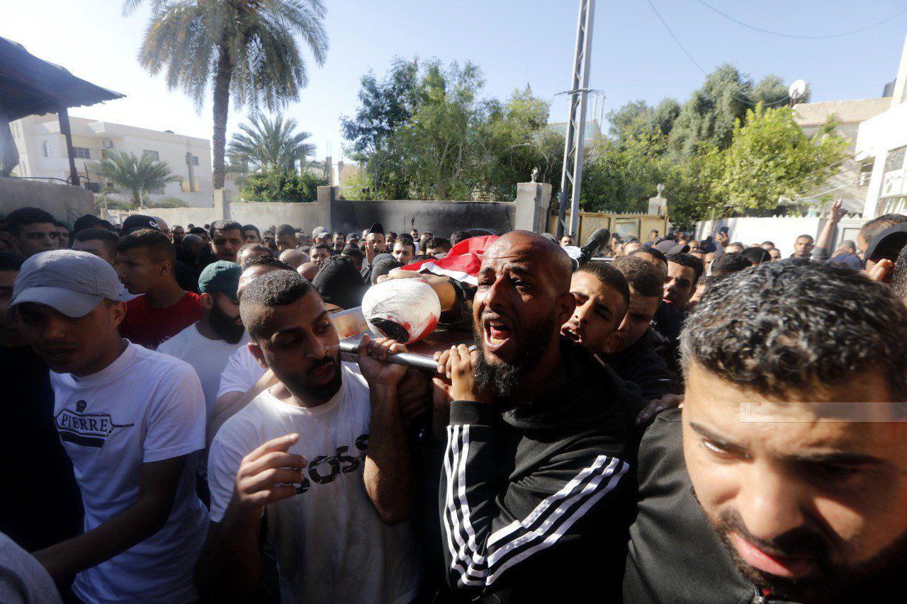شيعت جماهير فلسطينية غفيرة، اليوم الإثنين، جثمان الشهيد جبريل اللدعة (17 عامًا)، الذي استشهد صباحًا برصاص قوات الاحتلال الإسرائيلي خلال اقتحامها مخيم عقبة جبر جنوب أريحا.وانطلق موكب التشييع من مستشفى أريحا الحكومي، باتجاه المخيم، وصولًا لمنزل عائلته لإلقاء نظرة الوداع الأخيرة عليه، قبل أن أداء صلاة الجنازة عليه في مسجد المخيم، ليوارى الثرى في مقبر عقبة جبر.وأعلنت القوى الوطنية والإسلامية عن إضراب شامل في أريحا، تنديدًا بجريمة الاحتلال التي أدت لاستشهاد الفتى اللدعة بعد إصابته برصاصة بشكل مباشر في الرأس، وأصيب 6 مواطنين بجروح متفاوتة 3 منهم بحالة خطيرة.!!