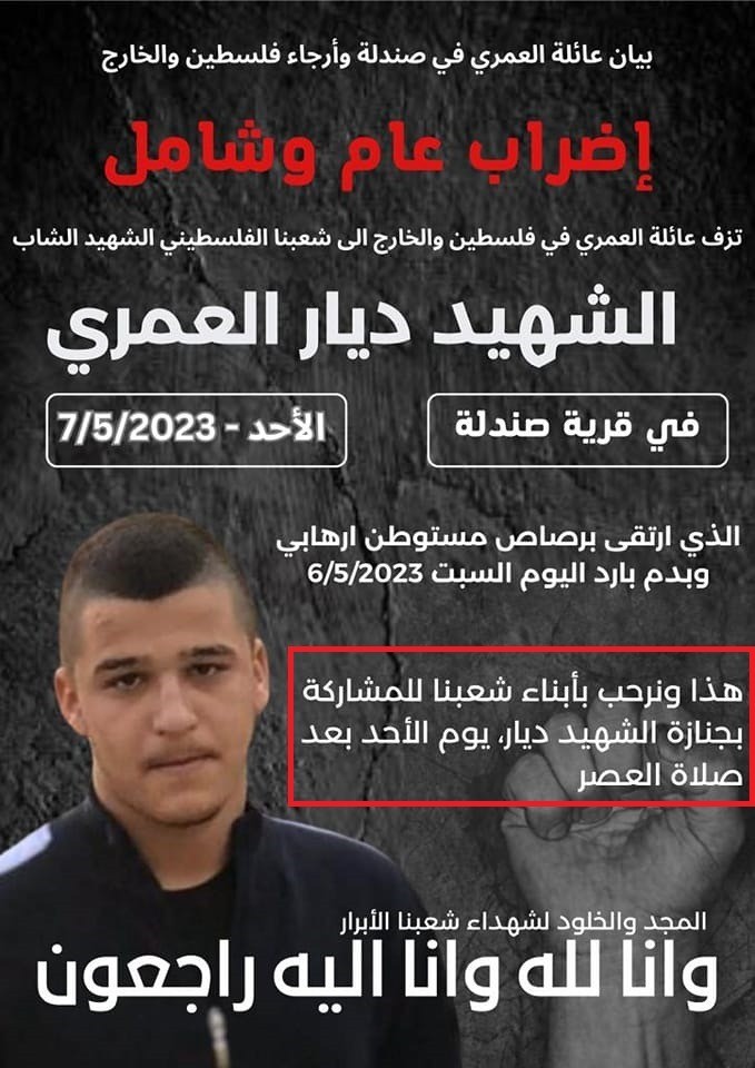 ادعى القاتل وهو جندي سابق في وحدة "جولاني" بجيش الااحتلال الإسرائيلي وقد عاد قبل أيام من خدمته جندي احتياط، في التحقيق أنه "أطلق النار على عمري دفاعا عن النفس"، مدعيا أنه "تعرض لاعتداء وأطلق النار بعدما شعر بالخطر على حياته....**تشهد قرية صندلة في مرج ابن عامر، إضرابا عاما وشاملا، اليوم الأحد، احتجاجا على جريمة قتل ابنها الشاب ديار عمري (20 عاما) برصاص شاب يهودي بعد عراك بالأيدي بينهما بالقرب من القرية، مساء أمس السبت.وتسود أجواء من الحزن والأسى صندلة، ويتوافد عدد من الأهالي في القرية ووفود من مختلف أنحاء المجتمع العربي إلى منزل عائلة الشهيد ديار العمري، لمواساتها والوقوف إلى جانبها في مصابها الجلل.وسيتم تشييع ضحية الجريمة ومواراته الثرى بعد صلاة العصر، اليوم، في مسقط رأسه، صندلة.وفي السياق، مددت محكمة الصلح في الناصرة، صباح اليوم، اعتقال دنيس بوكين (32 عاما) من القرية الزراعية "موشاف غان نير"، قاتل الشاب ديار العمري لمدة 7 أيام على ذمة التحقيق في الجريمة.ووفقا للادعاء فإن القاتل كان يقود السيارة بدون رخصة (رخصته مسحوبة) وتحت تأثير الكحول، وليس من أصحاب السوابق الجنائية.واعتقلت الشرطة شابين من صندلة وهما من عائلة ضحية جريمة القتل بزعم عرقلة سير جلسة المحكمة.وقال المحامي ناداف غرينفيلد، المكلف بالدفاع عن القاتل، إن "الجريمة ليست على خلفية قومية. الحديث عن خلاف طارئ على الطريق وموكلي بدون سوابق جنائية، وهو أعزب وأنهى الخدمة العسكرية الإلزامية".وقال والد الشهيد ديار أحمد العمري إنه "قبل حصول الجريمة كان ديار في العمل، وعندما عاد من العمل تناولنا وجبة الغداء سويةً، وتحدثنا عن كيفية تطوير مشروع عملنا الخاص حيث كان يطمح لتطوير المشروع، ثم طلب مني أن يستقل السيارة ليتجول في جبال فقوعة. وبسبب أزمة السير الخانقة التي تكون يوم السبت بسبب حاجز الجلمة، ذهب ديار من الشارع الالتفافي في بلدة (غان نير) المحاذية لقريتنا صندلة، على الرغم من أننا نعلم أن سكانها لا يحبون أن نمر من هناك".وعن القاتل، قال العمري إن "هذا القاتل هو تلميذ وزير الأمن القومي إيتمار بن غفير، الذي منح الصلاحية الكاملة بحمل السلاح وقتل العربي لأنه عربي، وهذا القاتل نفذ تعليمات الحكومة الإسرائيلية".وأكد أن "ديار لم يشكل أي خطر أو تهديد على حياة القاتل، إذ أنه هو الذي استفز ديار وأخرجه من السيارة حتى تصل الأمور إلى عراك بالأيدي. ديار لو أراد أن يعاركه كما يجب، لقتله دون استخدام أي وسائل، ولكن ديار أراد أن يبعد هذا القرف عنه، وعندما ابتعد ديار أطلق الغدّار النار على ديار من الخلف. القاتل أطلق 5 - 6 رصاصات وجميعها في الجزء العلوي من الجسد، وهذا دليل بأن القاتل الحاقد أراد قتل ديار لأنه عربي، لذلك أطلق كل هذا الرصاص دون أن يشكل ديار أي تهديد على حياته".وبخصوص مجريات المحكمة، أعرب والد الشهيد إنه "لا يعقل أن القاتل كان تحت تأثير الكحول وكان يقود المركبة، لأنه حسب القانون من يكون تحت تأثير الكحول لا يستطيع أن يقود المركبة، وأيضًا كيف لشخص تحت تأثير الكحول أن يقود مركبة ويمسك شخصا وينزل من المركبة ويقوم بالعراك معه، هذه إدعاءات واهية".وتطرق العمري إلى جريمة قتل الشهيد الطبيب محمد العصيبي من النقب في مدينة القدس، وقال إنها "حصلت في مكان مليء بكاميرات المراقبة، عدا عن الكاميرة التي تكون على الشرطي، وعلى الرغم من ذلك تم قتله وإخفاء كل الأدلة، وكل ذلك حتى تتم تبرئة القاتل".وختم الوالد الثاكل حديثه بالقول إنه "قمت ببناء منزل لديار وجهزته قبل مدة قصيرة، وقبل عدة أيام كنا بحفل زفاف أحد الشبان وقال لي ديار، يابا بدي أفتح بعرسي قرآن ما بدي يكون موسيقى".وتبين من توثيق مصور تهجم المجرم القاتل على الضحية عندما تواجد داخل سيارته، وفي أعقاب ذلك وقع عراك بالأيدي بينهما في الشارع.ووفقا لما بيّن التوثيق، عند عودة الضحية إلى سيارته أقدم القاتل على إطلاق النار عليه وقتله في المكان.وادعى القاتل وهو جندي سابق في وحدة "جولاني" بجيش الإحتلا