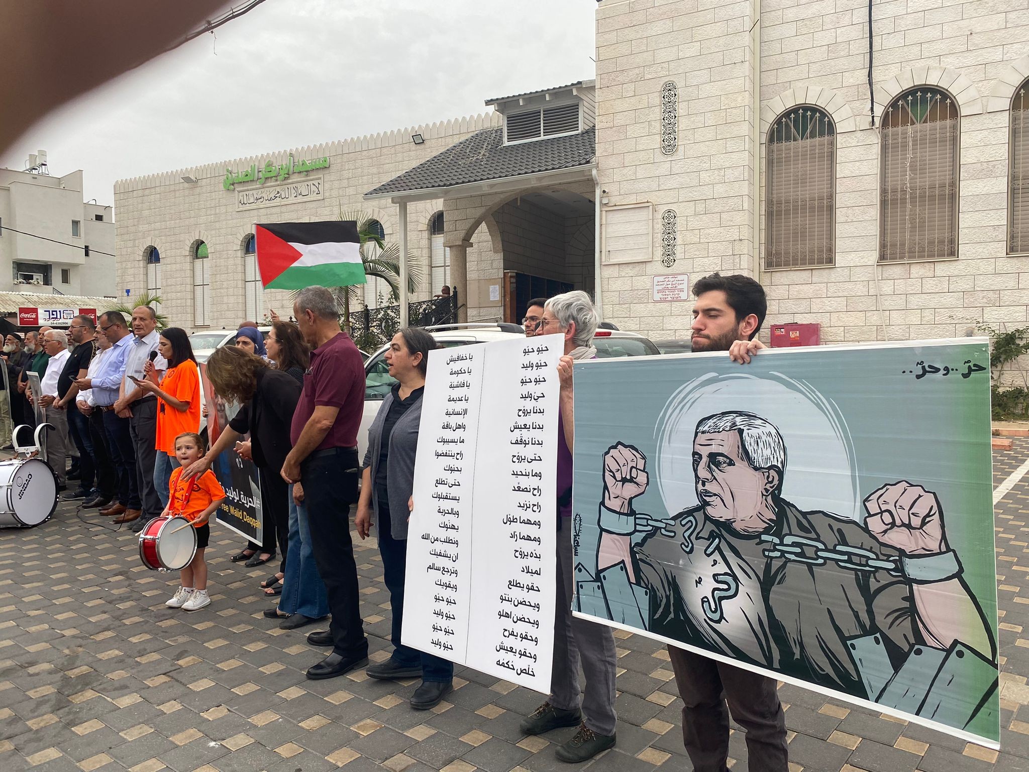 تظاهر عصر السبت العشرات في باقة الغربية تضامنا مع الأسير الأمني وليد دقة والمطالبة بإطلاق سراحه في أعقاب معاناته من مرض يشكل خطرا على حياته. هذا وقد رفع المشاركون صور وليد دقة، وهتفوا بهتافات تندد بسياسة استمرار اعتقاله، حيث كان من بين المشاركين زوجته سناء وابنته ميلاد. وقال المشاركون:"سوف تكون سلسلة من المظاهرات الأخرى حتى يتم اطلاق سراح وليد ولن نقف مكتوفي الأيدي امام ما يتعرض له داخل السجون". وفي رام الله، نظمت وقفة ومسيرة تضامنية مع الأسير دقة على دوار المنارة.ورفع المشاركون في المسيرة لافتات كتب على إحداها "أما آن لميلاد أن تحتضن والدها"، وأطلقوا هتافات مطالبة بحريته. قالت زوجة الأسير دقة، سناء سلامة، إن "وليد اجتاز يوم الخميس الماضي عملية قسطرة بسبب شك في حصول قصور قلبي لديه، وبعد ساعة ونصف من إجراء العملية جرى نقله إلى عيادة سجن الرملة دون انتظار نتائج الفحوصات بعد العملية، ومن الواضح أن وليد لا يتلقى العلاجات الطبية اللازمة وخصوصًا أن عيادة سجن الرملة لا تستوفي الشروط الأساسية للعلاجات اللازمة للحالة الصحية المعقدة له".وأضافت أن " الأسير وليد دقة يمكث في عيادة سجن الرملة، إذ أن وضعه الصحي مستقر ولكن لا يوجد معلومات دقيقة حول حالته لأنه يقبع في عيادة سجن الرملة التي تعد سجنا، ولا يوجد معلومات لدينا".وأكدت دقة "سنحاول الحصول على معلومات عن الحالة الصحية لوليد عن طريق طاقم الدفاع خلال الأسبوع القادم، ويوم الأربعاء القادم ستكون جلسة المحكمة في الرملة ومهما كان القرار سنقدم استئنافا عليه إما من طرف العائلة أو النيابة العامة".وأشارت إلى أنه "نخطط كي تكون وقفة إسناد لوليد أمام المحكمة، وهذا هو المكان والوقت اللازمين لمناصرته وهو يقف أمام أكثر جهاز عنصري وبالطبع سيكون كل الأحبة والرفاق والنشطاء والعائلة إلى جانبه في هذا اليوم".وختمت دقة بالقول إن "استمرار الضغط والنشاطات والدعم الشعبي، يشكل ضغطا كبيرا من أجل إطلاق سراح وليد والاعتماد على القضاء دون الدعم الشعبي سيكون دون مفعول، لذلك فإن النضال الشعبي مهم جدا".وفي آخر المستجدات، أعادت سلطة السجون الإسرائيلية الأسير دقة من مستشفى "أساف هروفيه" إلى عيادة سجن الرملة، الخميس، في خطوة أكدت عائلة الأسير والحملة المطالبة بإطلاق سراحه، في بيان، أنها مفاجئة ومستهجنة.وحمّل البيان "سلطة السجون المسؤولية التامة عن حياته في ظلّ عدم توفر أي بيئة علاجية، لمرض السرطان النادر الذي يعاني منه".