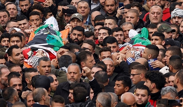 أعلنت فصائل العمل الوطني والإسلامي عن تشييع شهداء جنين في تمام الساعة العاشرة من صباح اليوم الأربعاء، من أمام المستشفى الحكومي، بمشاركة جماهيرية غفيرة من أبناء الشعب الفلسطيني.شيعت جماهير غفيرة من أبناء الشعب الفلسطيني في محافظة جنين، صباح اليوم الأربعاء، جثامين شهداء العدوان الإسرائيلي على مدينة ومخيم جنين.وانطلقت مواكب التشييع من أمام المستشفى الحكومي، بمشاركة جماهيرية غفيرة، وصولا إلى المخيم، حيث جري التجهيز لانطلاق مسيرة تشييع كبيرة لجميع الشهداء من جنين ومخيمها والقرى المجاورة.وهتف المشيعون للشهداء وللمقاومة التي صمدت في مواجهة العدوان الإسرائيلي، منددين بالتنسيق الأمني مع الاحتلال، ومتوعدين بمواصلة طريق المقاومة حتى دحر الاحتلال.وأعلنت فصائل العمل الوطني والإسلامي عن تشييع شهداء جنين في تمام الساعة العاشرة من صباح اليوم الأربعاء، من أمام المستشفى الحكومي، بمشاركة جماهيرية غفيرة من أبناء الشعب الفلسطيني.وقالت وزارة الصحة في آخر تحديث لها إن من بين الشهداء 4 أطفال تقل أعمارهم عن 18 عاما، في حين وجدت الطواقم الطبية منذ بدء العدوان فجر الإثنين، صعوبة بالغة في الوصول إلى المصابين والتعامل معهم.والشهداء هم: سميح فراس أبو الوفا (20 عاما)، وحسام محمد أبو ذيبة (18 عاما)، وأوس هاني حنون (19 عاما)، ونور الدين حسام مرشود (16 عاما)، ومحمد مهند الشامي (23 عامًا)، وأحمد محمد عامر (21 عاما)، ومجدي يونس عرعراوي (17 عاما)، وعلي هاني الغول (17 عاما)، ومصطفى عماد قاسم (16 عاما)، وعدي إبراهيم خمايسة (22 عاما)، وعبد الرحمن أحمد صعابنة (22 عاما)، وجواد نعيرات.وبحسب تقارير منظمات طبية وحقوقية، فإن الاحتلال استهدف مستشفيات وفرق وسيارات إسعاف، وأعاق تحركاتها، كما حاصر نحو 13 ألفا في المخيم وشرد نحو 4 آلاف، واعتدى عليهم أثناء خروجهم من منازلهم بقنابل الغاز والمسيل للدموع.وخلف العدوان مدينة ومخيم جنين أضرارا جسيمة بممتلكات الفلسطينيين، وتدمير العديد من المركبات، وتجريف طرق رئيسة مؤدية إلى المخيم، وأخرى فرعية في محيطه، الأمر الذي أعاق وصول مركبات الإسعاف إلى بعض المنازل لإخلاء المصابين، وأرغمت مئات الفلسطينيين من أهالي مخيم جنين على مغادرته تحت تهديد قصف منازلهم.