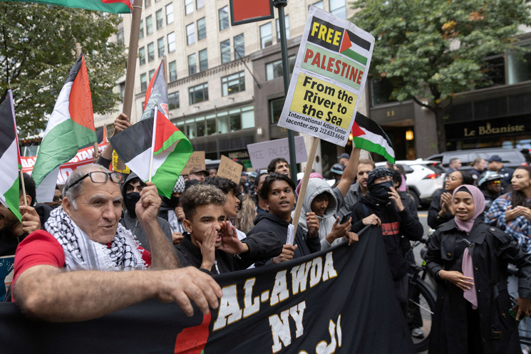 نيويورك: شارك الآلاف من أبناء الجالية الفلسطينية ونشطاء السلام ومناصري الحق الفلسطيني، في تظاهرات حاشدة مساء الأحد، في حي منهاتن بمدينة نيويورك، وفي مدينة شيكاغو بولاية إلينوي، تنديدا بالعدوان الإسرائيلي المتواصل على قطاع غزة.وطالب المتظاهرون بتوفير الحماية للشعب الفلسطيني، في ظل ما يتعرض له من اعتداءات على يد جيش الاحتلال الإسرائيلي والمستوطنين، وسط ترديد الهتافات المطالبة بالحرية لفلسطين وبدعم القضية الفلسطينية.وطالب المتظاهرون، ايضاً، بقطع المساعدات الأمريكية العسكرية عن الكيان الغاصب!!