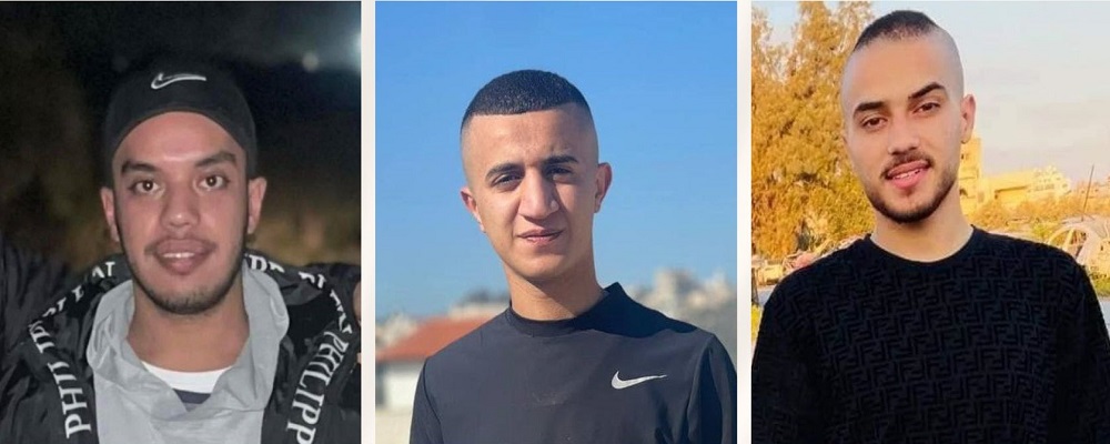 اغتالت قوات الاحتلال الإسرائيلي، مساء اليوم الإثنين، ثلاثة شبان في ضاحية اكتابا شرق مدينة طولكرم.وأفادت مراسلتنا بأن قوة خاصة إسرائيلية ترافقها قوات كبيرة من جيش الاحتلال، اقتحمت ضاحية اكتابا وتحديدا شارع مسجد القيسي، وأطلقت الرصاص بكثافة تجاه مركبة متوقفة في المكان، قبل أن تحاصر أحد المنازل في المنطقة وتغتال الشبان الثلاثة داخله.وأعلنت وزارة الصحة وصول ثلاثة شهداء إلى مستشفى طولكرم الحكومي، وهم: يوسف علي الخولي (22 عاما)، وعاهد سلمان موسى (23 عاما) وطارق أمجد شاهين (24 عاما).وتعرض جثمان أحد الشهداء للدعس من قبل مركبة عسكرية إسرائيلية قبل انسحاب الجنود من المنطقة، كما اعتقلت قوات الاحتلال الشاب محمود مطيع سليط بعد إصابته.وأفادت مصادر بالهلال الأحمر في طولكرم لمراسلتنا، بأن قوات الاحتلال منعت مركباتها من الوصول للشهداء، تحت تهديد السلاح، ولم تتمكن من الوصول إلى المنطقة إلا بعد انسحاب الاحتلال منها.وأعلنت القوى الوطنية والإسلامية في محافظة طولكرم الإضراب الشامل غدا الثلاثاء، حدادا على أرواح شهداء طولكرم والوطن.!!