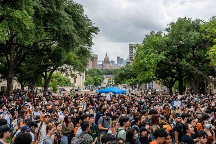 اوستن (تكساس): اعتقلت الشرطة الأمريكية العشرات من المتظاهرين المتضامنين مع فلسطين يوم الأربعاء في الحرم الجامعي بمدينة أوستن بعد أن خرج مئات الطلاب من الفصول الدراسية وبدأوا اعتصاماً لدعم غزة.وتظهر مقاطع الفيديو على وسائل التواصل الاجتماعي العديد من ضباط شرطة الولاية، وهم يرتدون معدات مكافحة الشغب، ويحاولون تفريق الحشد.وذكرت صحيفة تكساس تريبيون أنه تم اعتقال أربعة طلاب حتى الآن، ويمكن أن يتبعهم المزيد إذا لم تغادر الحشود.وذكرت صحيفة دالاس مورنينغ نيوز أن الشرطة كانت تحمل الهراوات والبنادق، واستخدم البعض الهراوات لإبعاد الناس.واستعدت الجامعة للاحتجاجات التي بدأت منتصف نهار الأربعاء، بحسب الصحيفة، حيث أرسل مكتب شؤون الطلاب بيانًا يحذر فيه الطلاب من أنه ستكون هناك عواقب للمشاركة في الحدث.وقال متحدث باسم المكتب: “لا تتسامح جامعة تكساس في أوستن مع تعطيل أنشطة الحرم الجامعي أو العمليات كما رأينا في الجامعات الأخرى”. “هذا وقت مهم في الفصل الدراسي لدينا حيث ينهى الطلاب الفصول الدراسية ويدرسون للنهائيات، وسنعمل أولاً وقبل كل شيء للسماح لهذه الوظائف الحيوية بالمضي قدمًا دون انقطاع.”يحاكي الاحتجاج الاحتجاجات الأخرى التي حدثت في العديد من الجامعات في جميع أنحاء الولايات المتحدة.وشهد الأسبوع الماضي مظاهرات في العديد من المؤسسات النخبوية حيث أقام المتظاهرون مخيمات على ممتلكات الجامعة.وهددت عدة جامعات بإيقاف الطلاب المشاركين، وتم القبض على أكثر من 100 ناشط في جامعة كولومبيا.!!