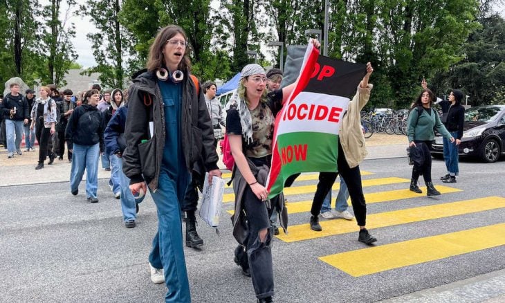 جنيف : تظاهر مئات الطلاب المؤيدين لفلسطين السبت في شوارع لوزان في سويسرا التي انطلقت من جامعتها الحركة الاحتجاجية في البلاد المنددة بالحرب الإسرائيلية على قطاع غزة.بدأت التظاهرة قرابة الساعة 13:00 بتوقيت غرينتش (15:00 بالتوقيت المحلي) مع هتاف إحدى المتظاهرات “تحيا، تحيا فلسطين”، وردد المحتجون المشاركون بالتظاهرة العبارة وبلغ عددهم حوالي 1500، وفق المنظمين.وتناوب طلاب من جامعة لوزان، ومن كلية الفنون التطبيقية في لوزان (EPFL)، وغيرها من الجامعات الناطقة بالفرنسية على التحدث مطالبين بمقاطعة أكاديمية للجامعات الإسرائيلية.وسار النشطاء حاملين الأعلام الفلسطينية وواضعين الكوفية على أكتافهم، في وسط المدينة.ورفع المتظاهرون شعارات بينها “حياة الفلسطينيين مهمة”، و”في فلسطين، الإنسانية هي التي تُغتال”، و”إسرائيل مجرمة، والولايات المتحدة شريكة”. كما رفعوا شعاري “الحرية لفلسطين” و”فلسطين ستكون حرة من النهر إلى البحر”.وكان من المقرر أن تقام التظاهرة في العاصمة الفدرالية برن، ولكن بسبب عدم الحصول على ترخيص، قررت تنسيقية الطلاب من أجل فلسطين تنظيمها في لوزان، حيث سُمح بها.وبدأت الحركة الطالبية الداعمة للفلسطينيين في سويسرا في 2 أيار/مايو في جامعة لوزان، بعدما استُلهمت من تحركات مماثلة في الولايات المتحدة.ثم انتشرت في سائر أنحاء البلاد، في جامعات جنيف وفريبورغ ونوشاتيل وبرن وبازل، بالإضافة إلى العديد من مؤسسات التعليم العالي الأخرى.!!