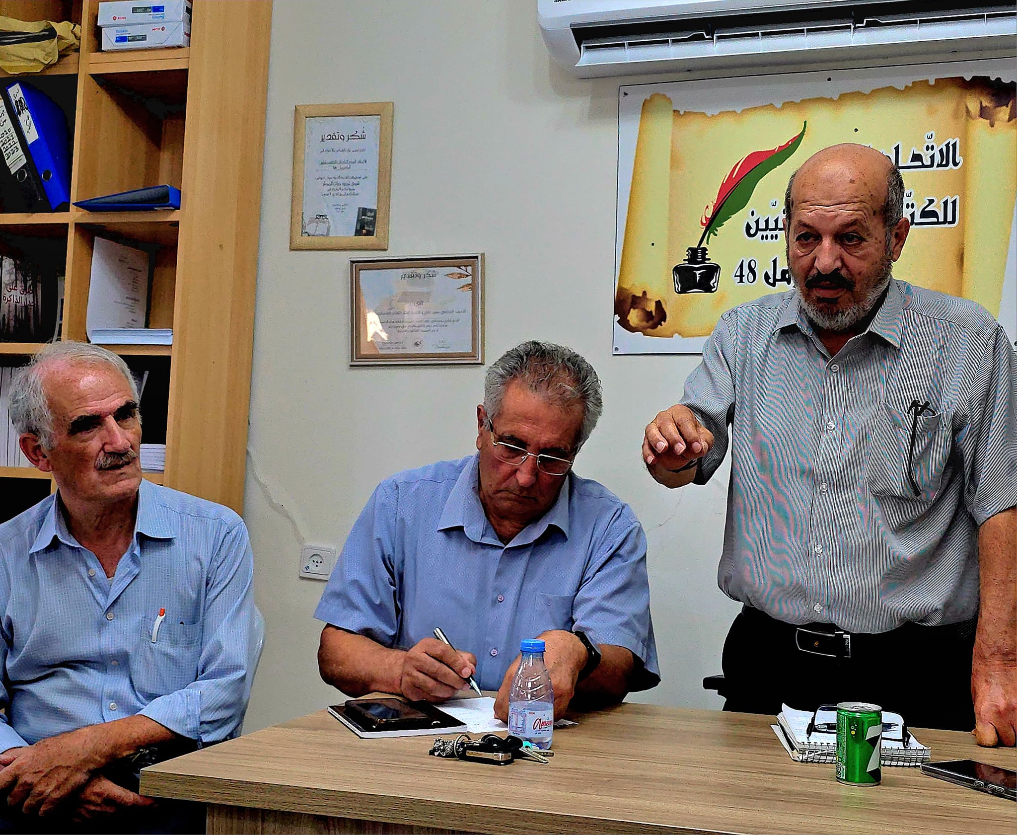 أقام الاتّحاد العامّ للكتّاب الفلسطينيّين- الكرمل 48 ندوته الأدبيّة الخامسة ضمن سلسلة ندوات "بين طيّات الكتب"، وذلك مساء الأربعاء 26 حزيران 2024 في مقرّ الاتّحاد في ، فيها تمّت مناقشة كتاب "لمّا إِمّي تحكيلي" للكاتب عضو الاتّحاد سمير أبو الهيجاء. افتتح النّدوة سكرتير الاتّحاد ومركّز البرنامج زياد شليوِط، وطرح رأيه حول القصّة باقتضاب، ونوّه إلى مواعيد النّدوات المستقبليّة والّتي تجري كلّ ثلاثة أسابيع. تلت الافتتاح المداخلات الّتي تناولت الرّواية من شتّى جوانبها بنقاط قوّتها ونقاط ضعفها، وشارك فيها كلّ من: مصطفى عبد الفتاح، محمد علي سعيد، أسيد عيساوي، سهيل عيساوي، سعيد نفّاع، ياسين بكري، فهيم أبو ركن، رحاب بريك، علي رافع، سعيد ياسين، نبيل طنّوس، فوز فرنسيس وفوزات حمدان. تطرّقت المداخلات لشتّى الأوجه الّتي تناولها سمير في روايته التّاريخيّة الواقعيّة من خلال سيرة جمعيّة لأهالي عين حوض؛ عائلته، على لسان والدته وباللّهجة المحكيّة وفي صلبها النّكبة وإسقاطاتها، وقد نوّه المتداخلون إلى العنوان، ومنهم من ركّز على النّكبة والتّكافل الاجتماعيّ بين أبناء شعبنا الباقين باستيعاب بعض القرى للمهجّرين، وفي سياقنا أهل دالية الكرمل الّتي استضافت أهالي عين حوض. البعض من المتداخلين اهتمّ بالتحدّث عن استخدام الكاتب اللّغة المحكيّة، وعن شخصيّة الأمّ والسّيرة إن كانت ذاتيّة أو غيريّة. ومع نهاية المناقشة، شكر المؤلّف سمير أبو الهيجاء الجميع على حضورهم، وعلى إضاءاتهم وملاحظاتهم ووضّح بعض الأمور الأخرى الّتي لم ترد في القصّة وأجاب على الأسئلة الّتي طرحت.تجدر الإشارة إلى أنّ الكِتاب يتناول ما سردته والدة الكاتب سمير أبو الهيجاء عن مراحل سيرتها باللّغة العاميّة، منذ أن تهجّرت وهي صغيرة عن قريتها المهجّرة "إجزم" ايّام النّكبة واللّجوء إلى قرية دالية الكرمل، والتّنقّل من بيت لآخر حتّى العودة إلى أرض جوار القرية المهجّرة؛ عين حوض وإقامة قريتهم على قربٍ منها، ويتناول إضافة مشاكل ومعاناة الحياة كالفقر والترمّل في جيل مبكّر وفي كنفها ثلاثة أطفال نذرت نفسها لتنشِئتهم في ظلّ التّهجير، ونجحت.!!