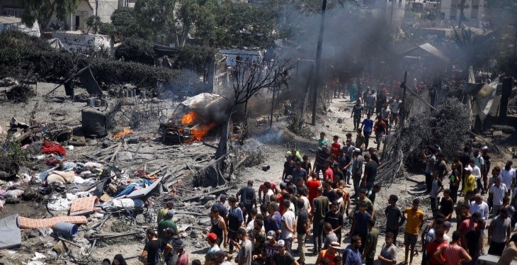 غزة..اعلن مكتب الإعلام الحكومي بغزة ان أكثر من 100 شهيد ومصاب في مجزرة إثر قصف الاحتلال خيام نازحين بمنطقة المواصي غرب خان يونس.وأضاف أن الطواقم الإغاثية تواصل انتشال عشرات الشهداء والمصابين من موقع القصف، وشدد على أن المستشفيات غير قادرة على استيعاب هذا العدد من الجرحى.وقالت وزارة الصحة في غزة "عاجزون عن تقديم الخدمات الطبية في مستشفى ناصر بخانيونس بسبب العدد الكبير من الجرحى".واعلن المتحدث باسم المديرية العامة للدفاع المدني محمود بصل: استشهاد أحد عناصرنا وإصابة 8 آخرين بعد إستهداف إسرائيلي لمنزل سكني مرة أخرى أثناء عمل الطواقم على إنقاذ المواطنين من داخل المنزل وسط مدينة خان يونس.واضاف الدفاع المدني ان حجم القصف الكبير الذي استهدف به الاحتلال أماكن وخيام النازحين يصعب الوصول إلى العديد من الجثامين والجرحى.وتأتي هذه المجزرة بعد ارتكاب الاحتلال مجازر مروّعة في منطقة الصناعة بحي تل الهوى، وفي أحياء مدينة غزة ومخيمات الوسطى، والتي راح ضحيتها أكثر من 100 شهيدٍ مما يرفع أعداد الشهداء بشكل متلاحق ومتسارع.وادان المكتب الحكومي بغزة ارتكاب الاحتلال الإسرائيلي لهذه المجزرة الكبيرة والمجازر المستمرة بحق المدنيين، كما ادان اصطفاف الإدارة الأميركية مع الاحتلال في جريمة الإبادة الجماعية المستمرة في قطاع غزة.وحمل المكتب الاحتلال "الإسرائيلي" والإدارة الأمريكية المسئولية الكاملة عن استمرار هذه المجازر المروّعة ضد المدنيين.وطالب المجتمع الدولي والأمم المتحدة والمنظمات الدولية المختلفة وكل دول العالم الحر بالضغط على الاحتلال الإسرائيليوعلى الإدارة الأميركية لوقف حرب الإبادة الجماعية وإيقاف شلال الدم المتدفق في قطاع غزة.!!