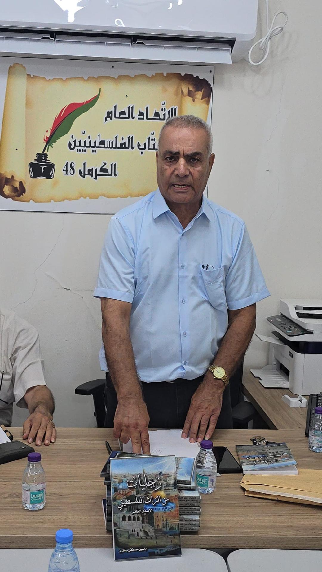 نظم "الاتحاد العام للكتاب الفلسطينيين – الكرمل 48"، اللقاء السادس من برنامجه الأدبي "بين طيّات الكتب"، مساء الأربعاء 17 تموز 2024 في مقر الاتحاد في شفاعمرو، والذي تناول ديوان "زجليات من التراث الفلسطيني" لعضو الاتحاد، الشاعر ياسين بكري وبحضور عدد من أعضاء الاتحاد. افتتح اللقاء وأداره سكرتير الاتحاد ومركّز البرنامج، الكاتب زياد شليوط منوها إلى استمرار البرنامج في ظل النجاح الذي يسجله وأعلن عن اللقاءات القادمة.في مستهل الأمسية قامت الشاعرة براءة غسان، بأداء زجلية "على دلعونا" من ديوان الشاعر مغناة بأداء جميل. وتلاها الشاعر ياسين بكري بالقاء بعض قصائده الزجلية.ثم تم تداول الكتاب من جميع جوانبه، الغزلية والوطنية والزجلية التراثية في مداخلات الحضور والتي شارك فيها الكتاب والشعراء: محمد علي سعيد، فوزات حمدان، فهيم أبو ركن، براءة غسان، محمود زيدان، سعيد نفاع، مفلح طبعوني، زاهر بولس ومصطفى نفاع. حيث توقف المتداخلون عند أهم مميزات شعر الزجل وأصوله الفلسطينية وأعلامه الأوائل، كما تناولوا موضوعات الديوان وفنونه.هذا وأرسل عضو الاتحاد أحمد الصح، ابن عرابة، تحية خاصة من عمان لأعضاء الاتحاد وزميله ياسين، قال فيها: "إن كتاب الأخ ياسين كنز من الأغاني والزجل الفلسطيني، الذي يزرع في أعماق الروح محبة كل شيء جميل في أرض وسماء وطننا الغالي". وفي الختام قام الشاعر ياسين مصطفى بكري، بالرد على بعض الأسئلة والتعليق على المداخلات، واختتمها بالقاء قصيدة من ديوانه. هذا وقام موقع "العين الساهرة" بإدارة حسام إدريس بنقل وقائع الأمسية مباشرة على صفحته وتوثيقها بالصور.