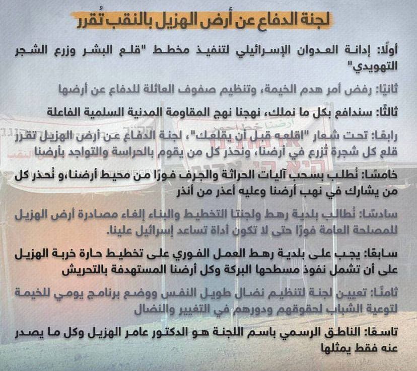 قضاء بئر السبع .. النقب : بيان صادر عن لجنة الدفاع عن ارض الهزَّيل للن...