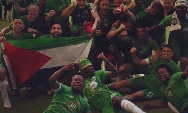 فريق “هامربي” يرفع العلم الفلسطيني خلال تتويجه بكأس دوري كرة القدم الس...