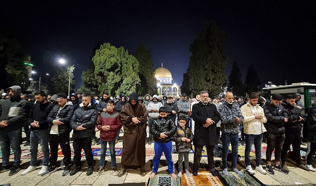 60 ألف مصل يؤدون صلاتي العشاء والتراويح في المسجد الأقصى!!...