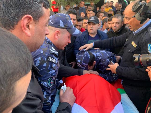 فلسطين : تشييع الشهيد الشرطي طارق بدوان في عزون بمراسيم عسكرية ومواجها...
