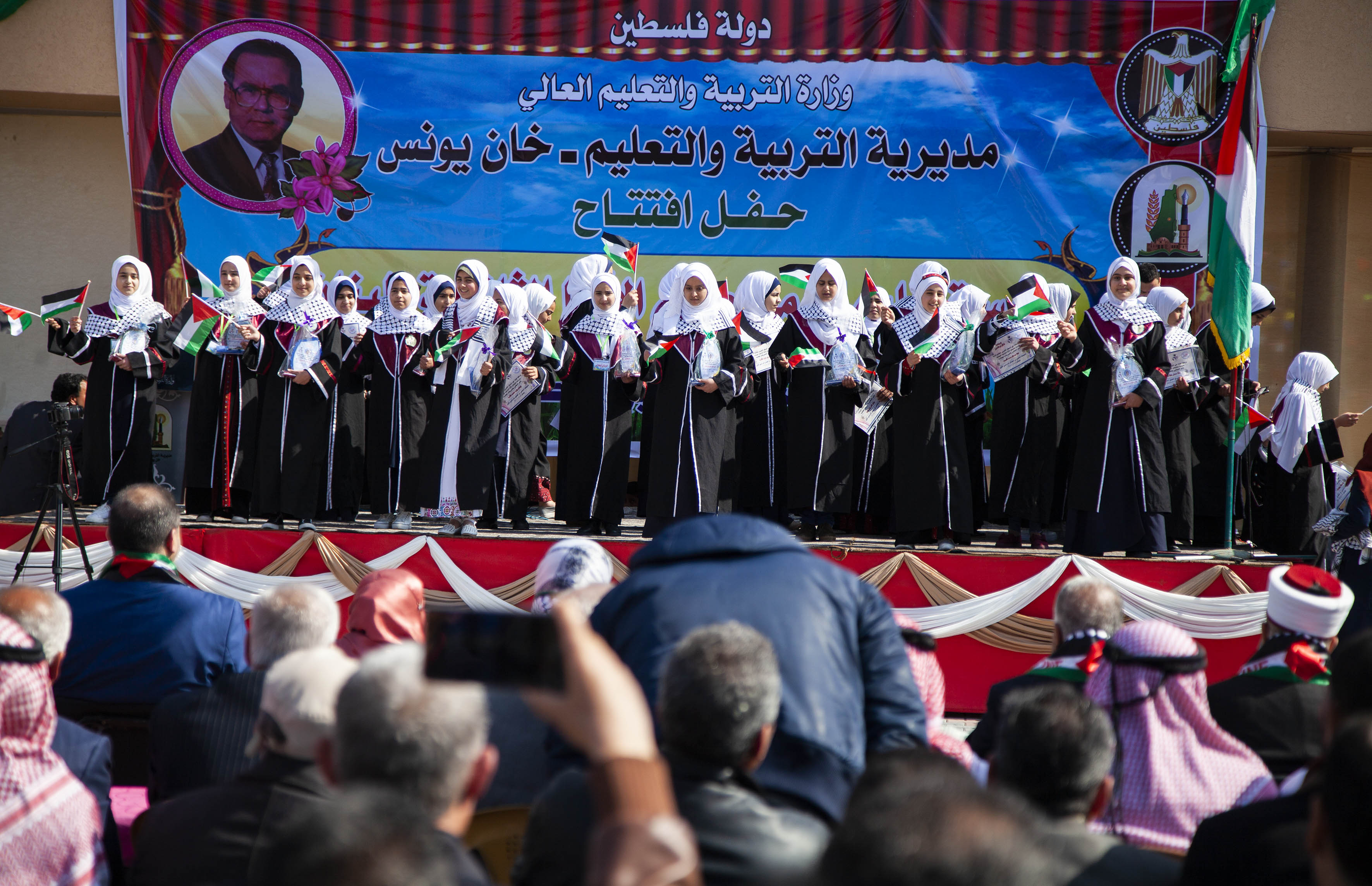 خانيونس : خلال افتتاح مدرسة سليمان إبراهيم الاغا الثانوية للبنات: وزي...