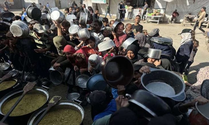 خان يونس.. نازحون يتوافدون على تكية السعادة وسط تفاقم الأزمة الإنساني...