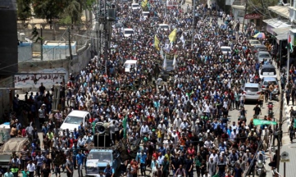 رفح.. فلسطين : الآلاف يشيعون الشهيد أبو نجا القيادي بالقسام!!...