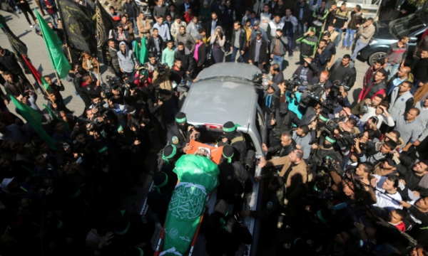 غزه..فلسطين :الالاف في تشييع القائد في كتائب عز الدين القسام الأسير ال...