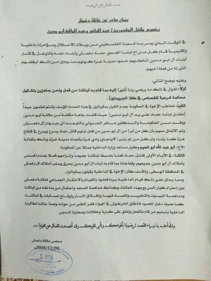 غزة..فلسطين : عائلة دغمش تتبرأ من قتل ابنها لشقيقين من عائلة أبو مدين...