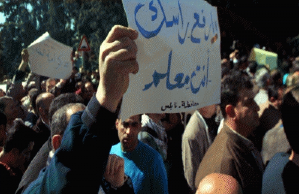 رام الله..فلسطين :المعلمون الفلسطينيون ينهون إضراباً استمر شهراً استجا...