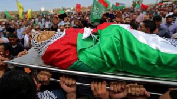الخليل..فلسطين : تشييع الشهيد جوابرة إلى مثواه الأخير في مخيم العروب...