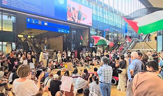 جنيف: مظاهرة في محطّة للقطارات للمطالبة بوقف قتل أطفال غزّة!!...