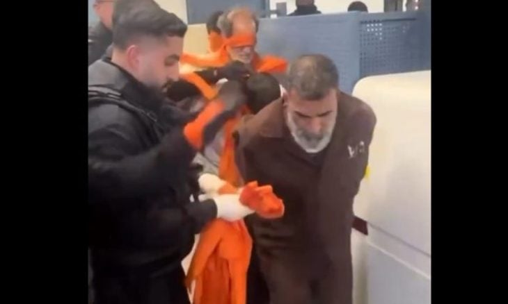 مقطع مصور يظهر تنكيل سلطات الاحتلال بأسرى فلسطينيين قبيل تحررهم!!...