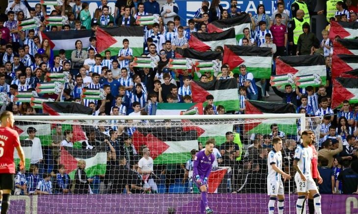 بعد مشجعي أوساسونا الذين ردوا على لاعب إسرائيلي.. أنصار سوسيداد يرفعون...