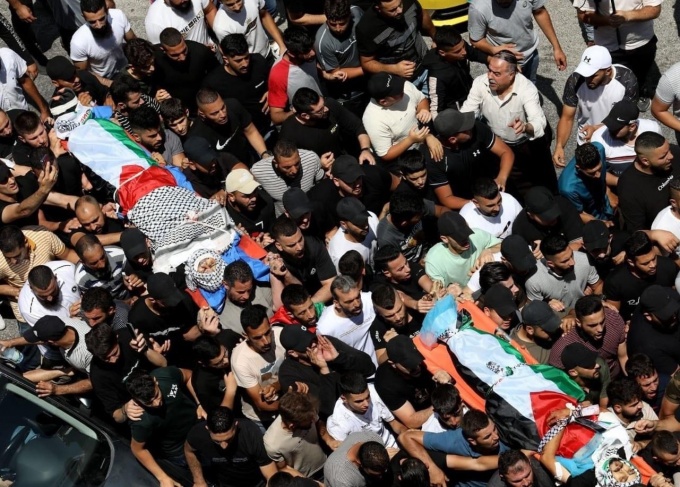 نابلس :جماهير غفيرة تشيّع جثماني الشهيدين مقبول وشاهين!!...