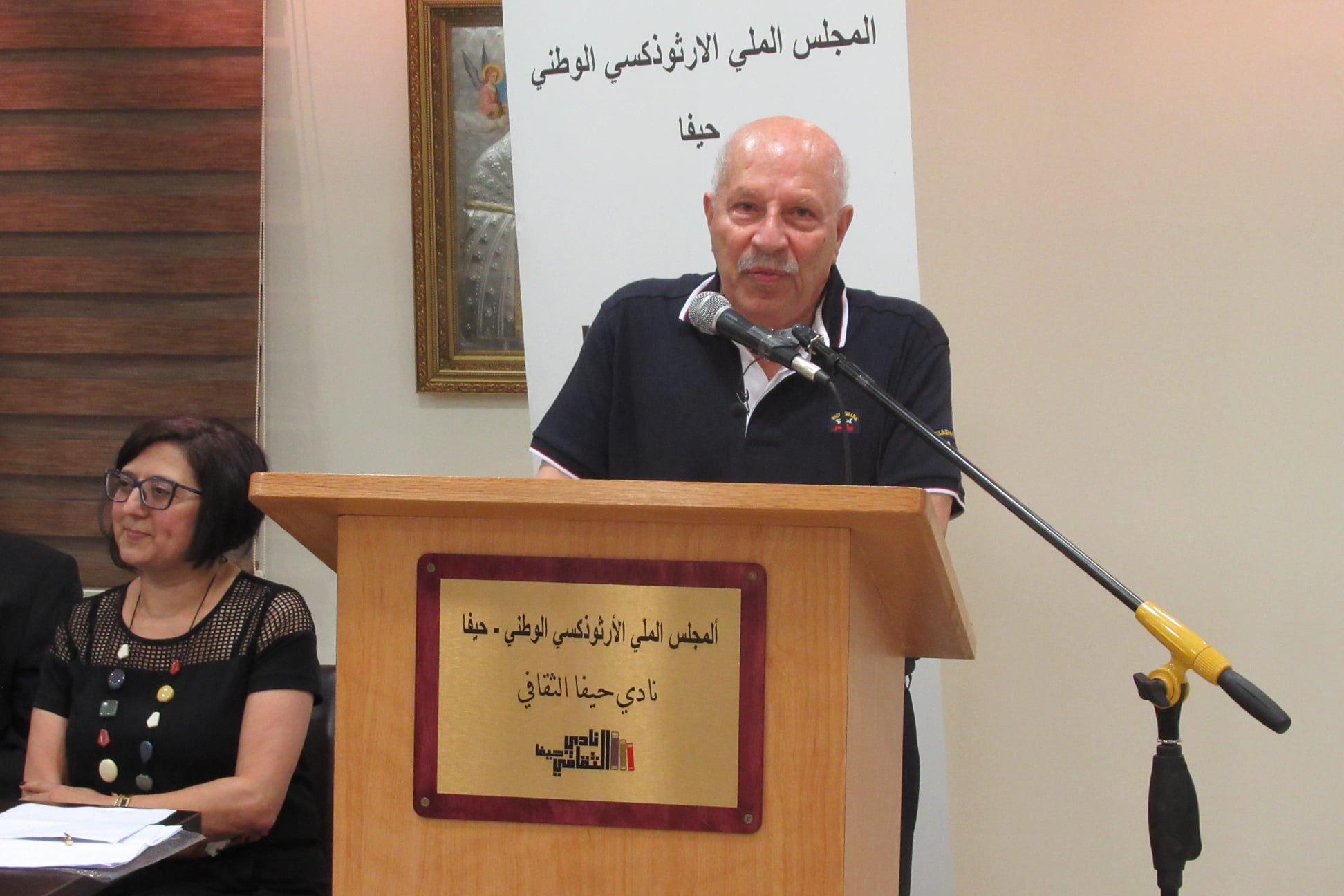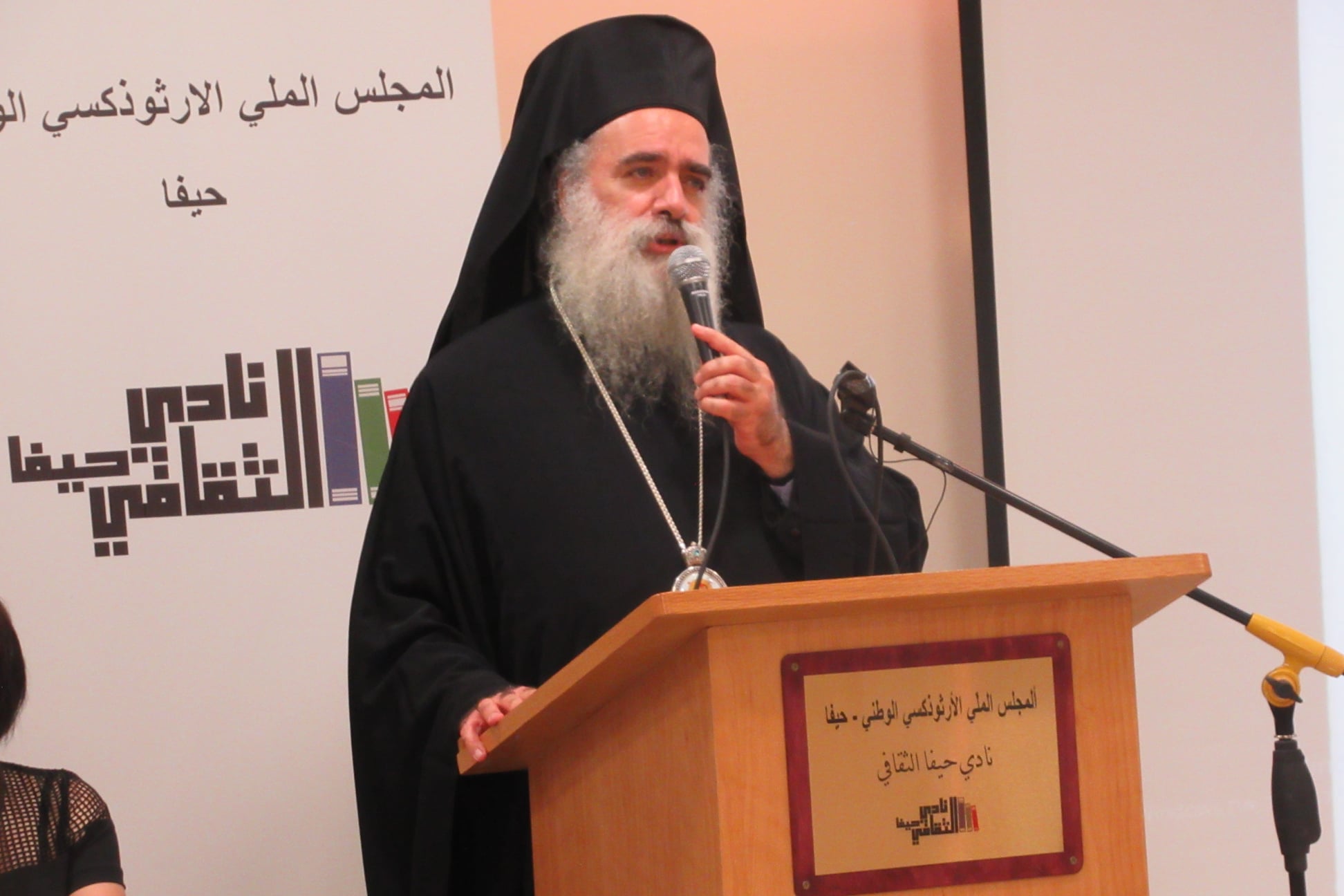 وفي فقرة المشاركين الأفاضل على المنصة كان الاستهلال خيرا مع سيادة المطران عطا الله حنا، فقدم تحيته الخاصة للمكرٍّمين أصحاب الصرح الثقافي المتمثل في نادي حيفا وقاعة كنيسة يوحنا المعمدان مشيرا أن الكنيسة أكثر من مجرد جدران ومكان للصلاة وأن تكريم المحامي علي رافع -أبو المهنّد- هو تكريم للرسالة. وبصفة المحامي رافع مشاركا فعالا في برامج ومؤتمرات مركز اللقاء للدراسات الدينية والتراثية - بيت لحم، وحاملا لرسالة المركز بتعزيز روح المحبة والتآخي بين أبناء شعبنا الواحد، نقل له مشاعر الوفاء والمحبة والتقدير من الزملاء أعضاء المركز مباركين له هذا التكريم ليواصل مسيرته الإنسانية والحضارية والوطنية في الدفاع عن أنبل قضية في هذا العالم، قضية الشعب الفلسطيني التي أريد لنا أن ننساها ونعيش حالة يأس وقنوط لكن بوجود قامات وطنية كقامة رافع شعبنا لن يستسلم ولا بد للحق أن يعلو ولا يُعلى عليه. وأردف قائلا، إن الأحداث الأخيرة أثبت أن شعبنا الفلسطيني شعب حي في دفاعه عن قضيته وعن قدسه ومقدساته.