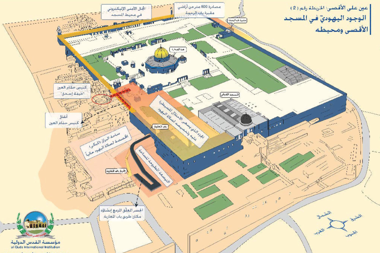 5- حائط البراق: وهو السور الغربيّ للمسجد الأقصى المبارك، يقعُ فيه "باب المغاربة" الذي يُعتقد أن النبيّ ﷺ دخل منه المسجد الأقصى ليلة الإسراء "فنزل هناك وصلى بالأنبياء إماما، وربط البراق بحلقة باب المسجد"؛ طبقا لرواية الإمام ابن القيم (ت 752هـ/1351م) في ‘زاد المعاد‘. والسور الغربيّ للمسجد [حائط البراق] هو الذي يسميه الصهاينة اليوم "حائط المبكى".