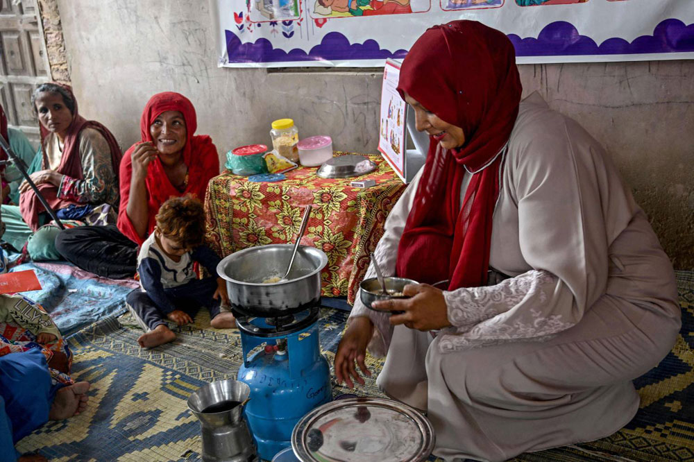 إسلام أباد - أمام أمهات يحملن أطفالهنّ الجائعين، تحضّر أسما مهروس السميد بالحليب، فمن خلال وصفاتها المحلية وميسورة التكلفة، تحاول هذه المرأة الباكستانية مكافحة سوء التغذية الذي يطال طفلا من بين كل طفلين تقريبا في المناطق الريفية الجنوبية.في ذلك اليوم، كانت هذه العاملة في المجال الاجتماعي البالغة 37 عاما، تقترح طبقين من السميد: طبقا مقليا يناسب ذوي الدخل المنخفض، وسميدا مع بيضة أو حليب، وهما عنصران متوفران بسهولة في القرى ومغذّيان جدا.وتقول “لا يتخطى سعر علبة السميد 50 روبية (16 سنتا من الدولار)، وإذا استخدمت ملعقة أو ملعقتين كبيرتين يوميا في وصفاتك، تكفي العبوة بسهولة لأسبوع كامل”.