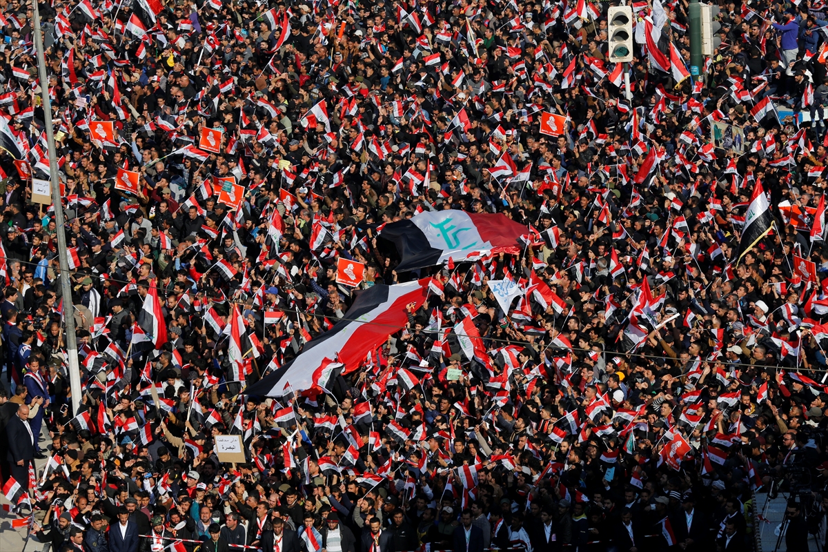 خرج آلاف العراقيين من أتباع التيار الصدري، السبت، بتظاهرة مليونية دعا إليها مقتدى الصدر في ساحة التحرير وسط بغداد للمطالبة بتغيير مفوضية الانتخابات "شخوصا وقانونا".