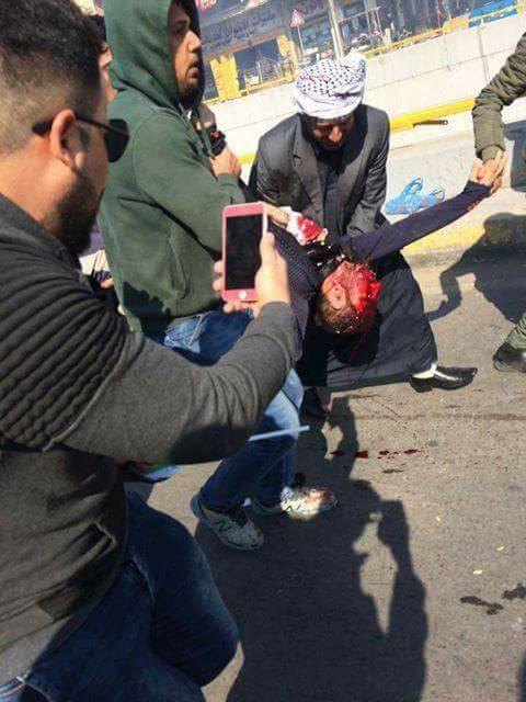 وتداول نشطاء على مواقع التواصل الاجتماعي صورا لعدد من المتظاهرين جراء إصابات تعرضوا لها من قوات الأمن العراقية قرب المنطقة الخضراء المحصنة.